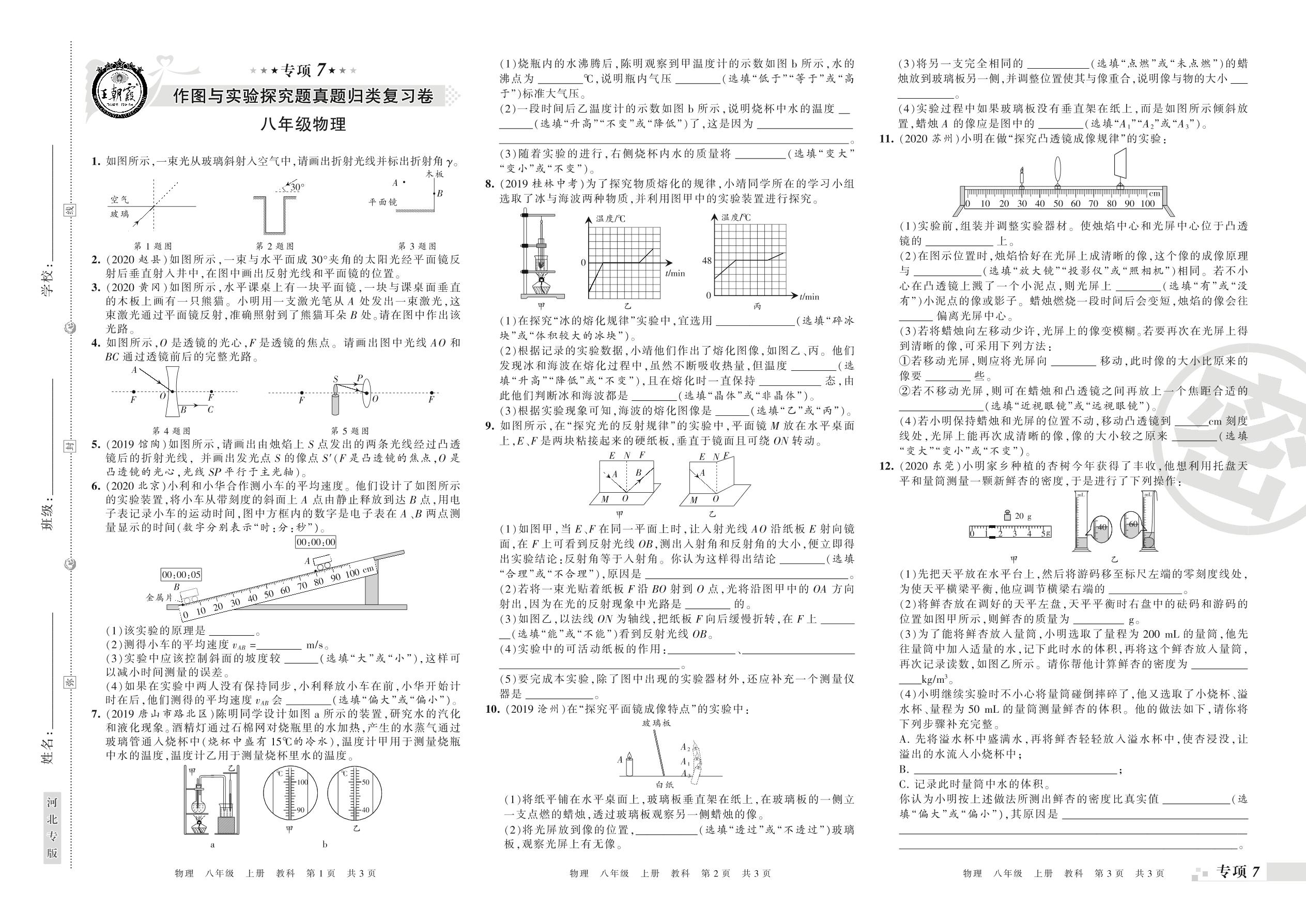王朝霞期末专项卷——作图与实验探究题、计算应用题真题归类复习八年级上册物理(教科版)【0】