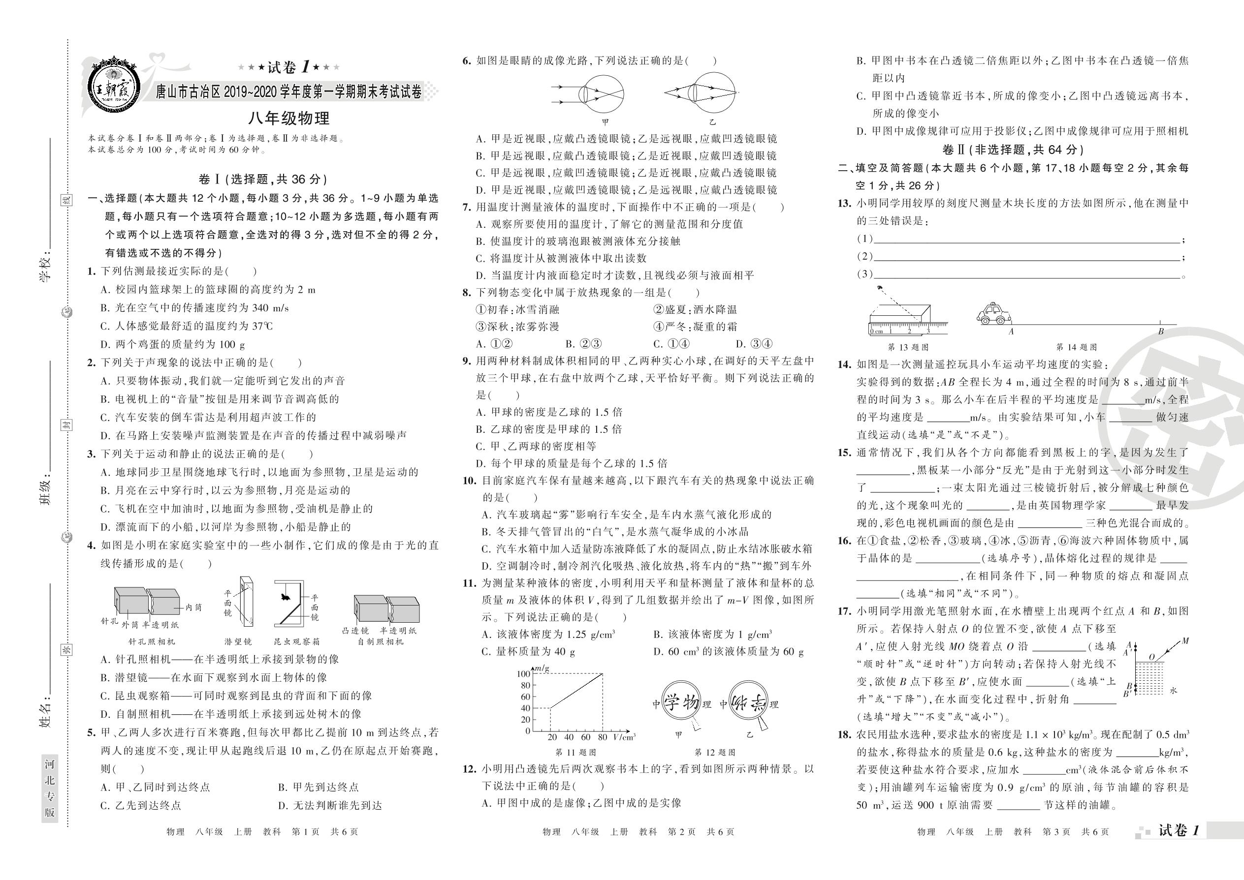 2019-2020学年第一学期唐山市古冶区八年级物理试卷(教科版)【1】