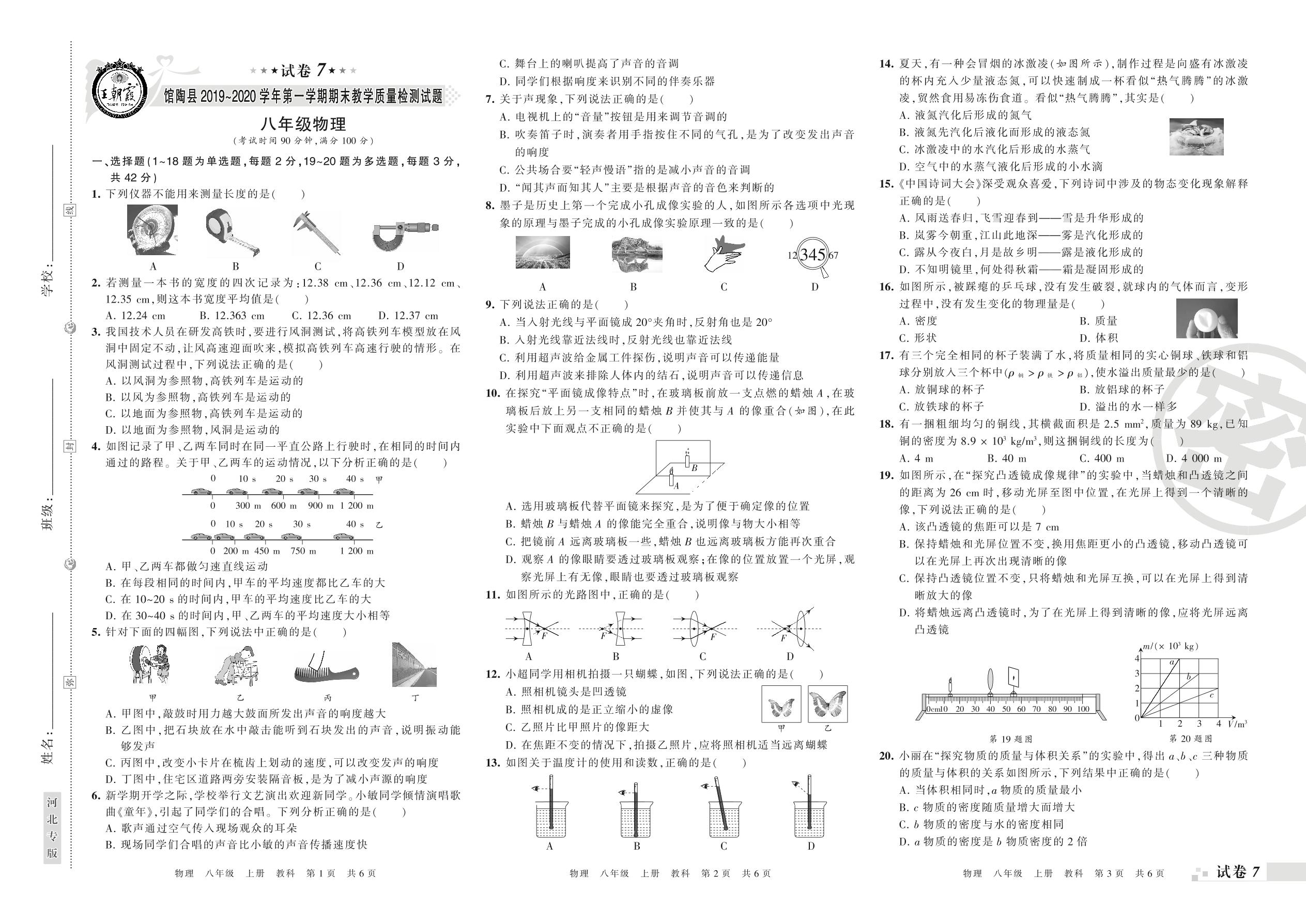 2019-2020学年第一学期邯郸市馆陶县八年级物理试卷(教科版)【7】