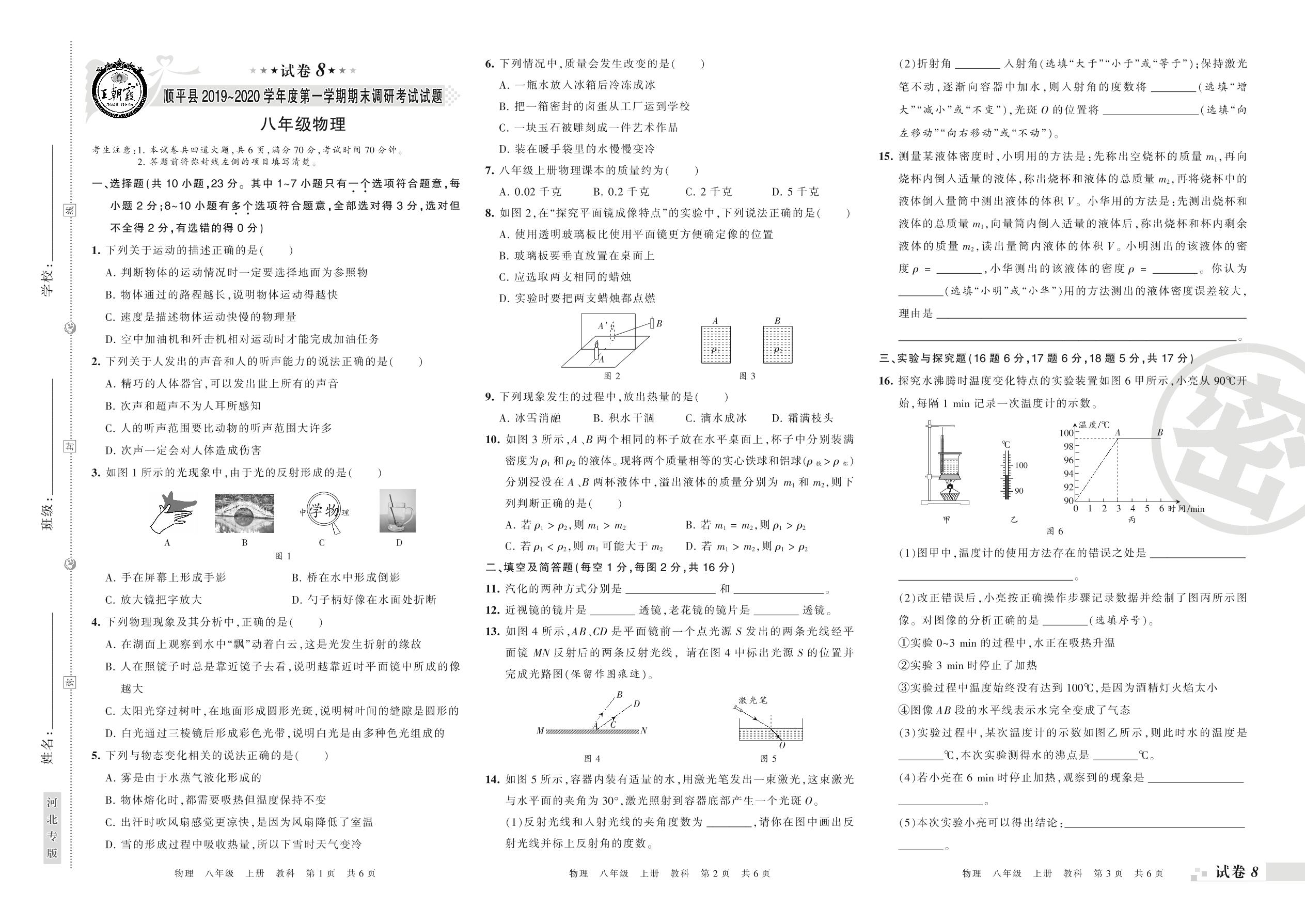 2019-2020学年第一学期保定市顺平县八年级物理试卷(教科版)【8】
