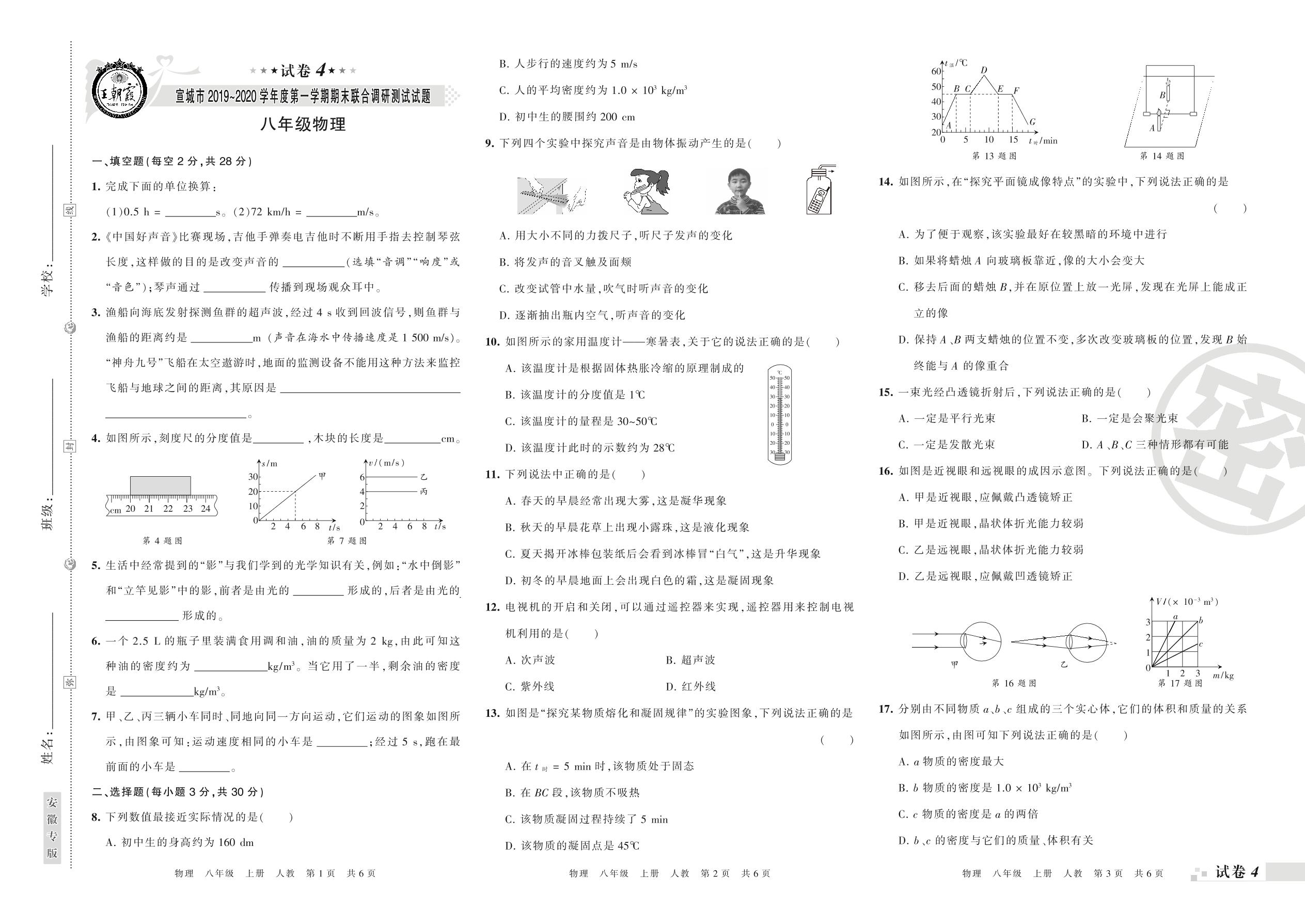 2019-2020学年第一学期宣城市八年级物理试卷(人教版)【4】