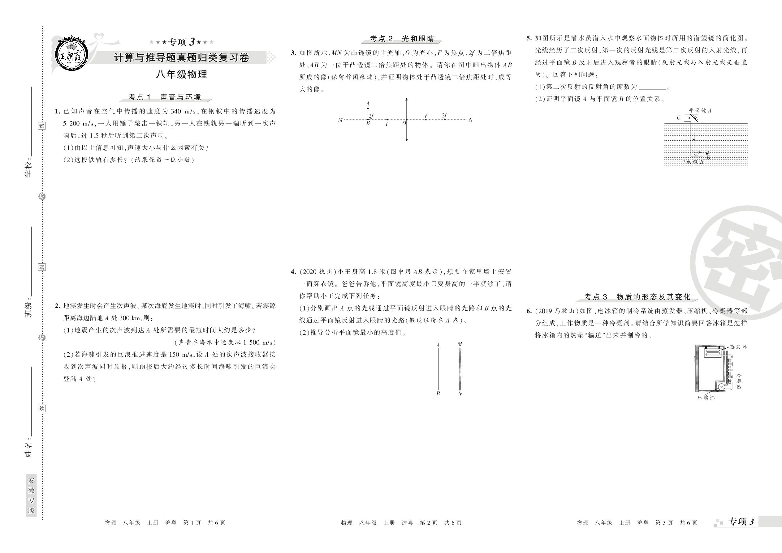 王朝霞期末专项卷——计算与推导题真题归类复习八年级上册物理(沪粤版)