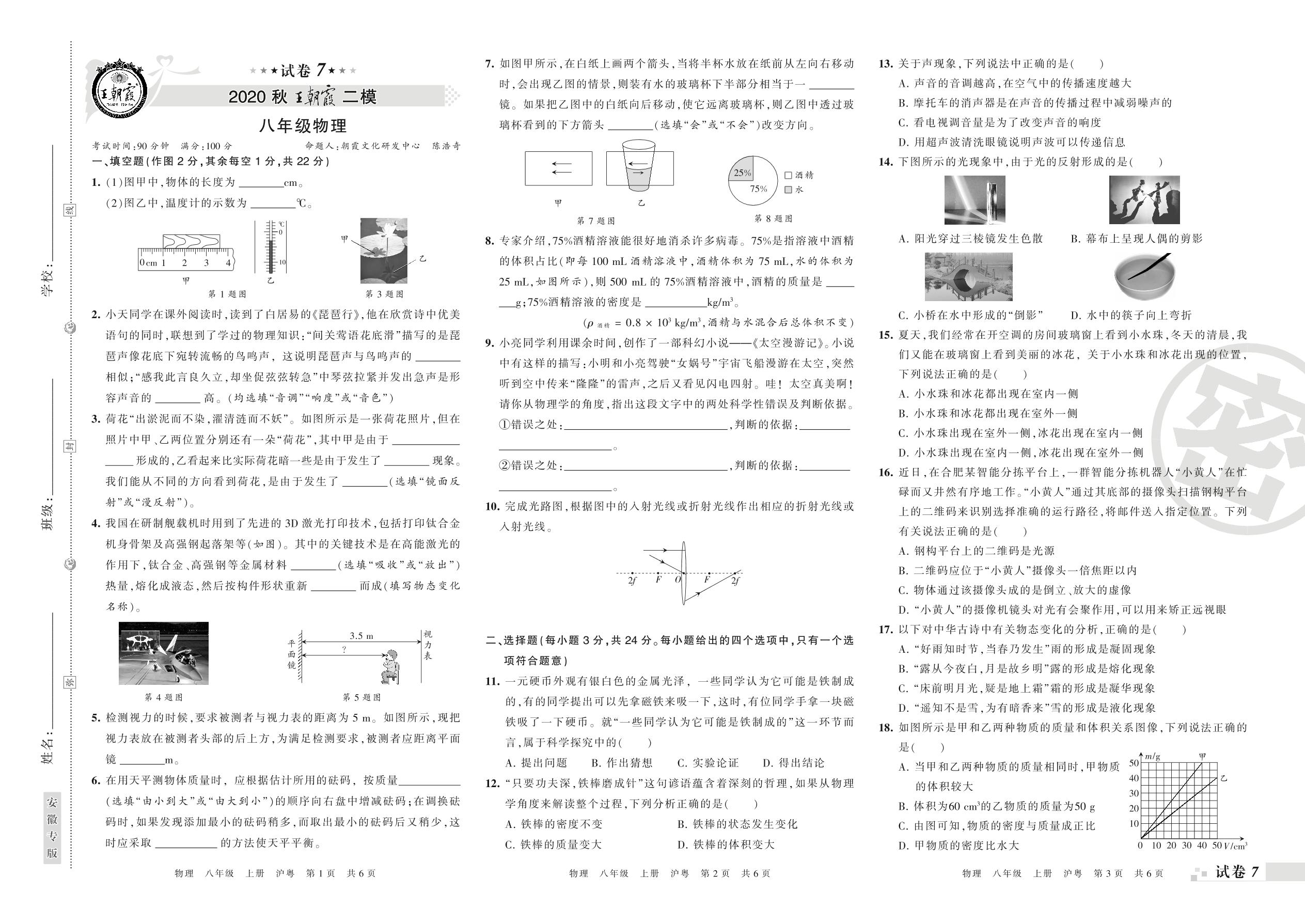 王朝霞期末模拟卷八年级上册物理(沪粤版)_R210810162630【7】