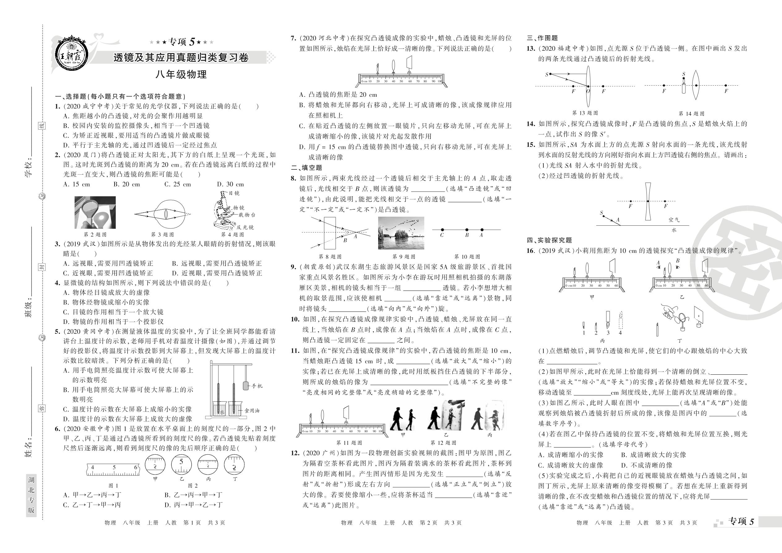 王朝霞期末专项卷——透镜及其应用、质量与密度真题归类复习八年级上册物理(人教版)_R210810162715【0】