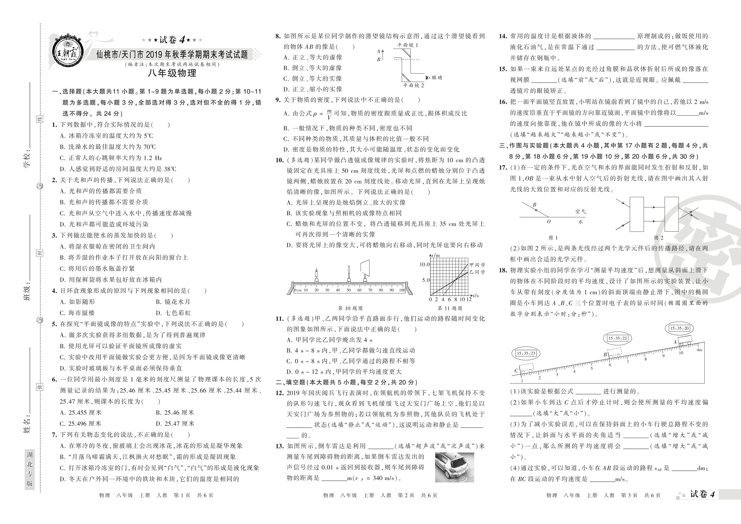 2019-2020学年第一学期仙桃市、天门市八年级物理试卷(人教版)【4】