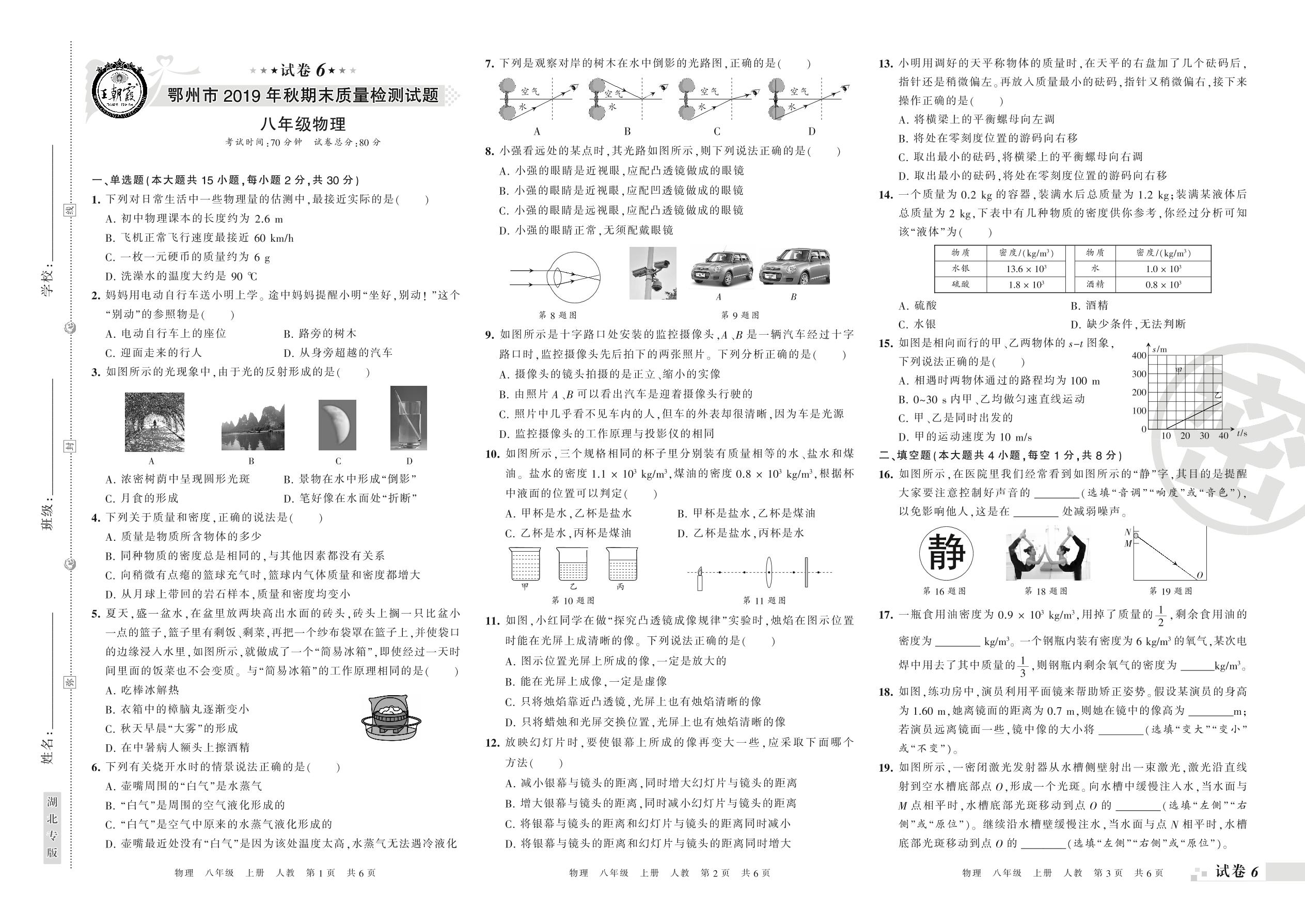 2019-2020学年第一学期鄂州市八年级物理试卷(人教版)【6】