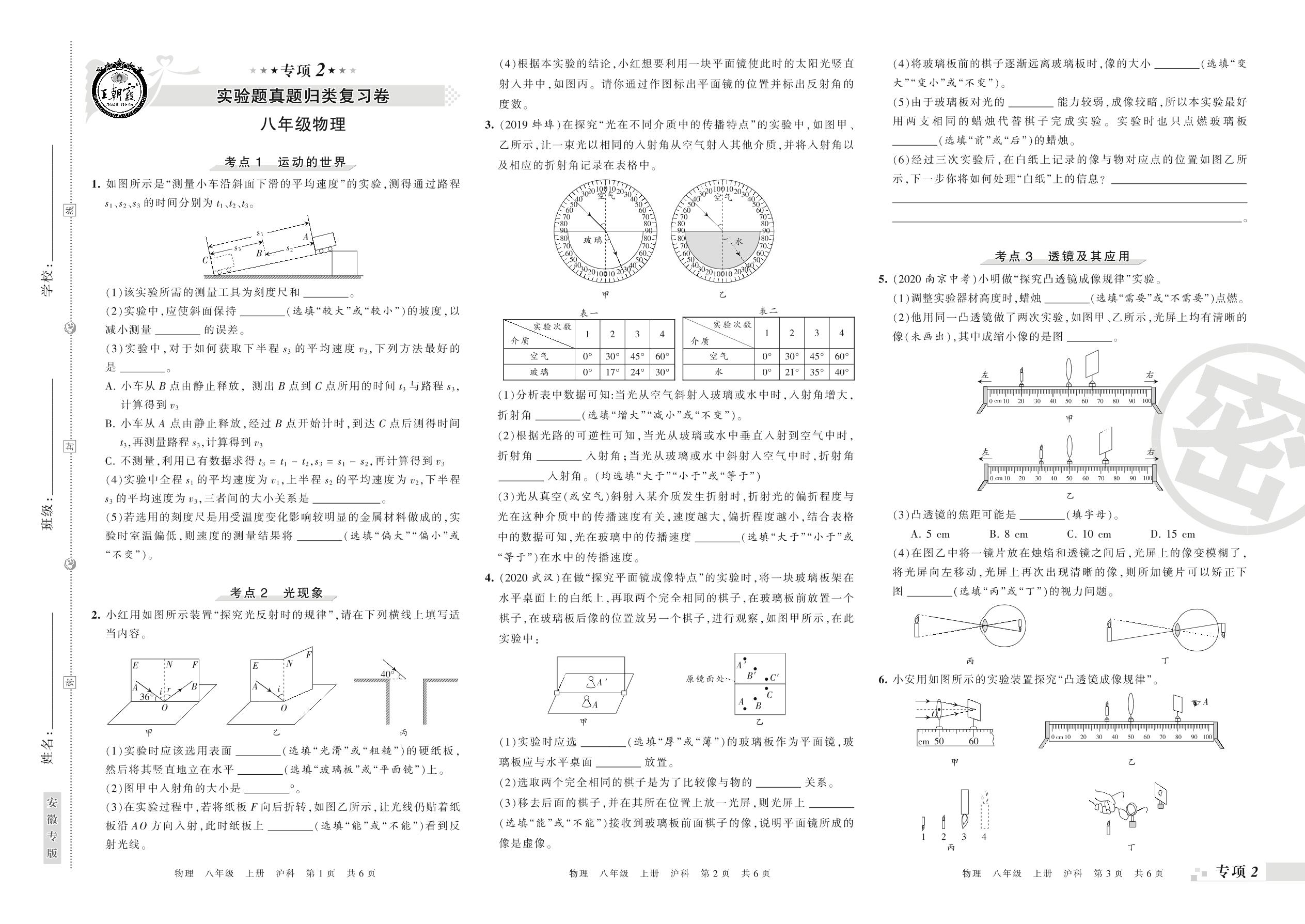 王朝霞期末专项卷——实验题真题归类复习八年级上册物理(沪科版)