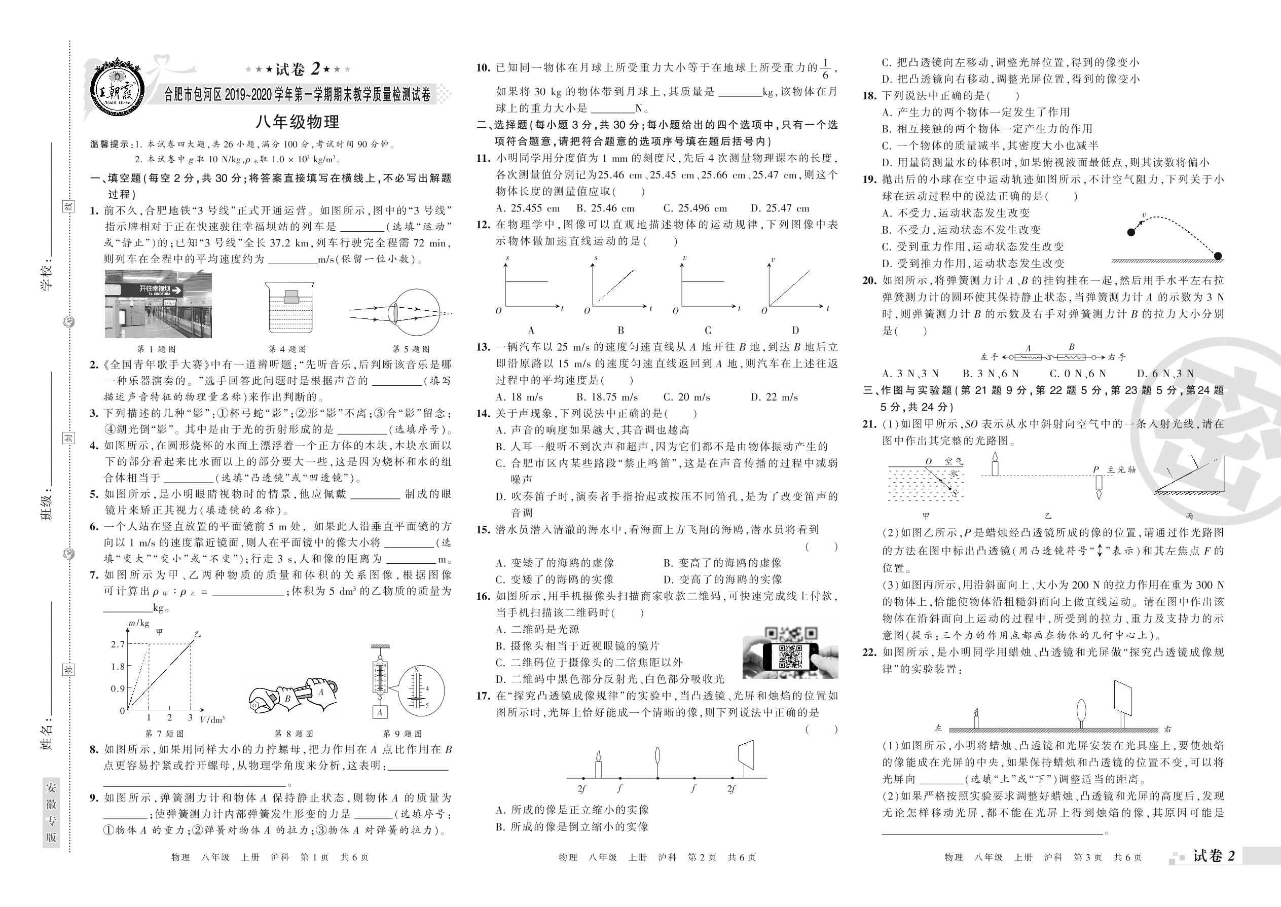 2019-2020学年第一学期合肥市包河区八年级物理试卷(沪科版)【2】