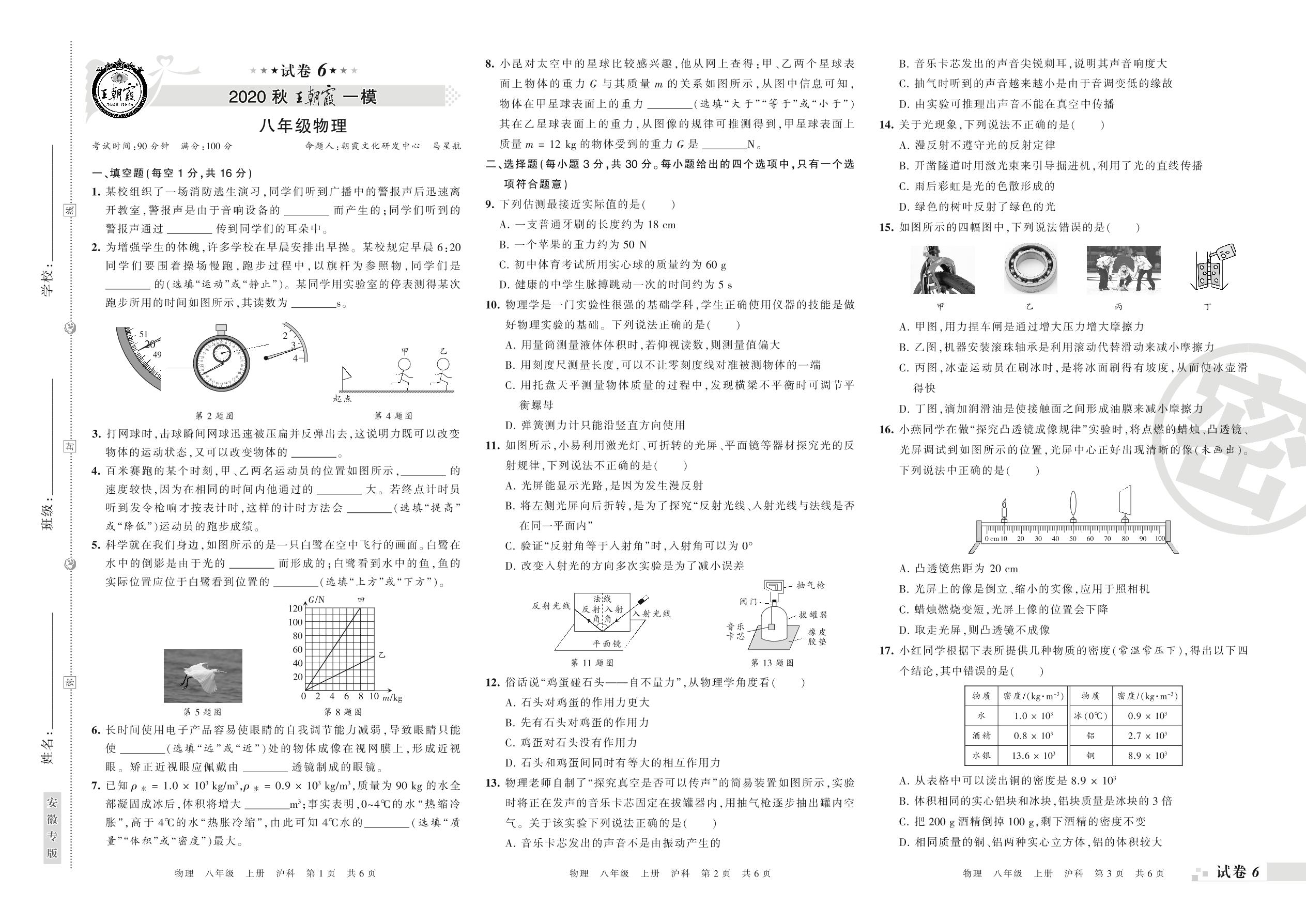 2020-2021学年第一学期王朝霞期末模拟卷八年级物理(沪科版)_R210810163100【6】