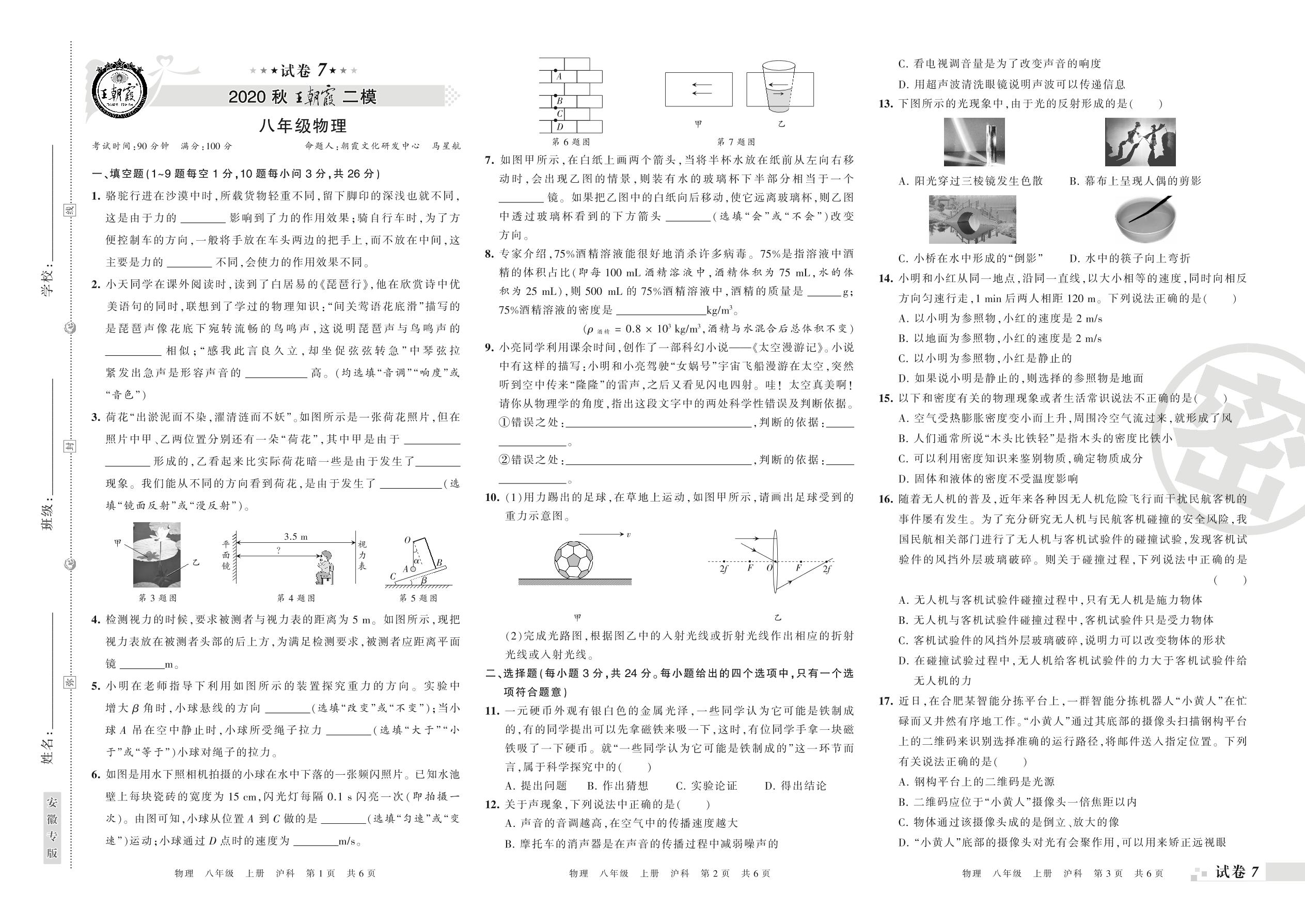 2020-2021学年第一学期王朝霞期末模拟卷八年级物理(沪科版)_R210810163110【7】