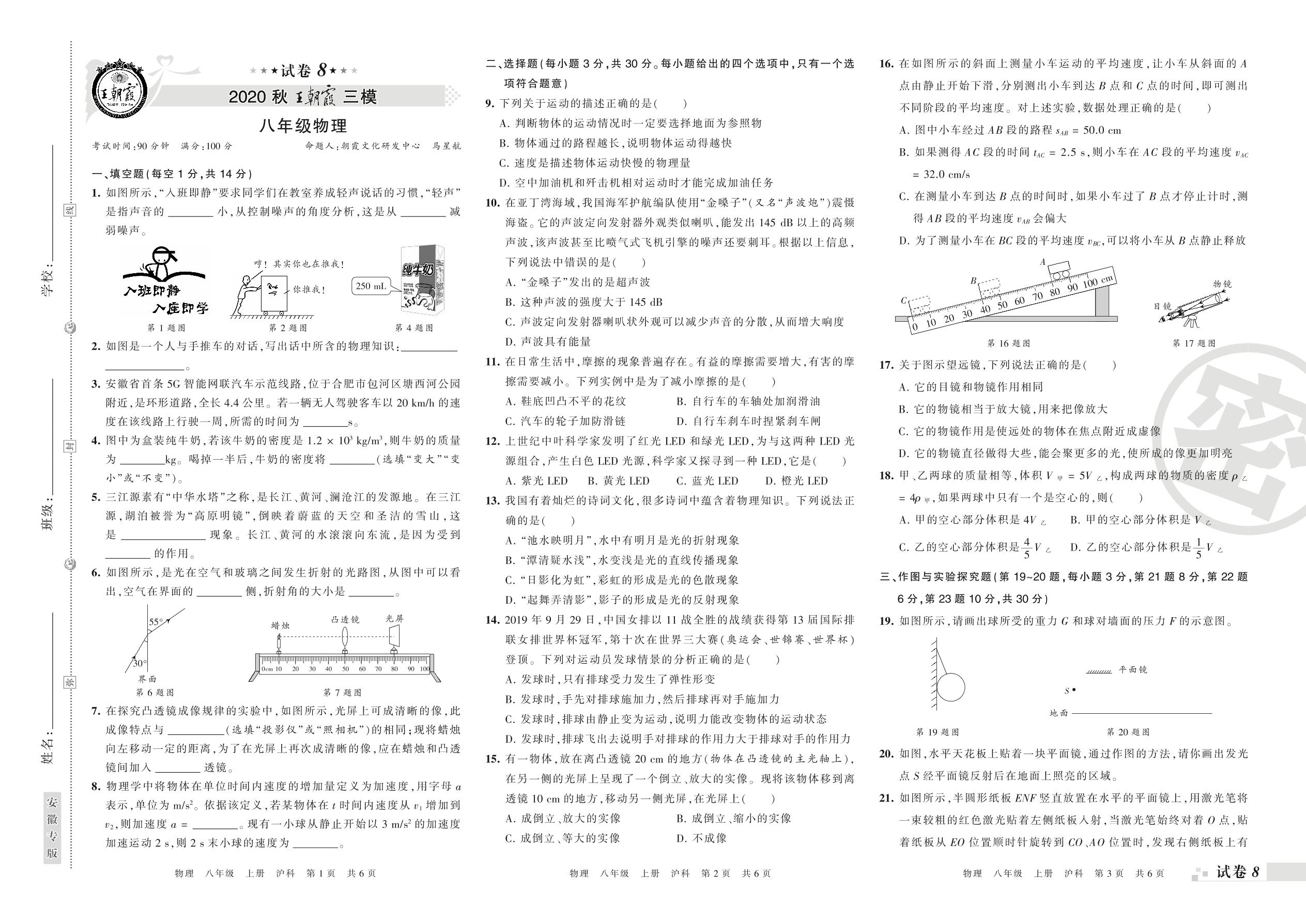 2020-2021学年第一学期王朝霞期末模拟卷八年级物理(沪科版)【8】