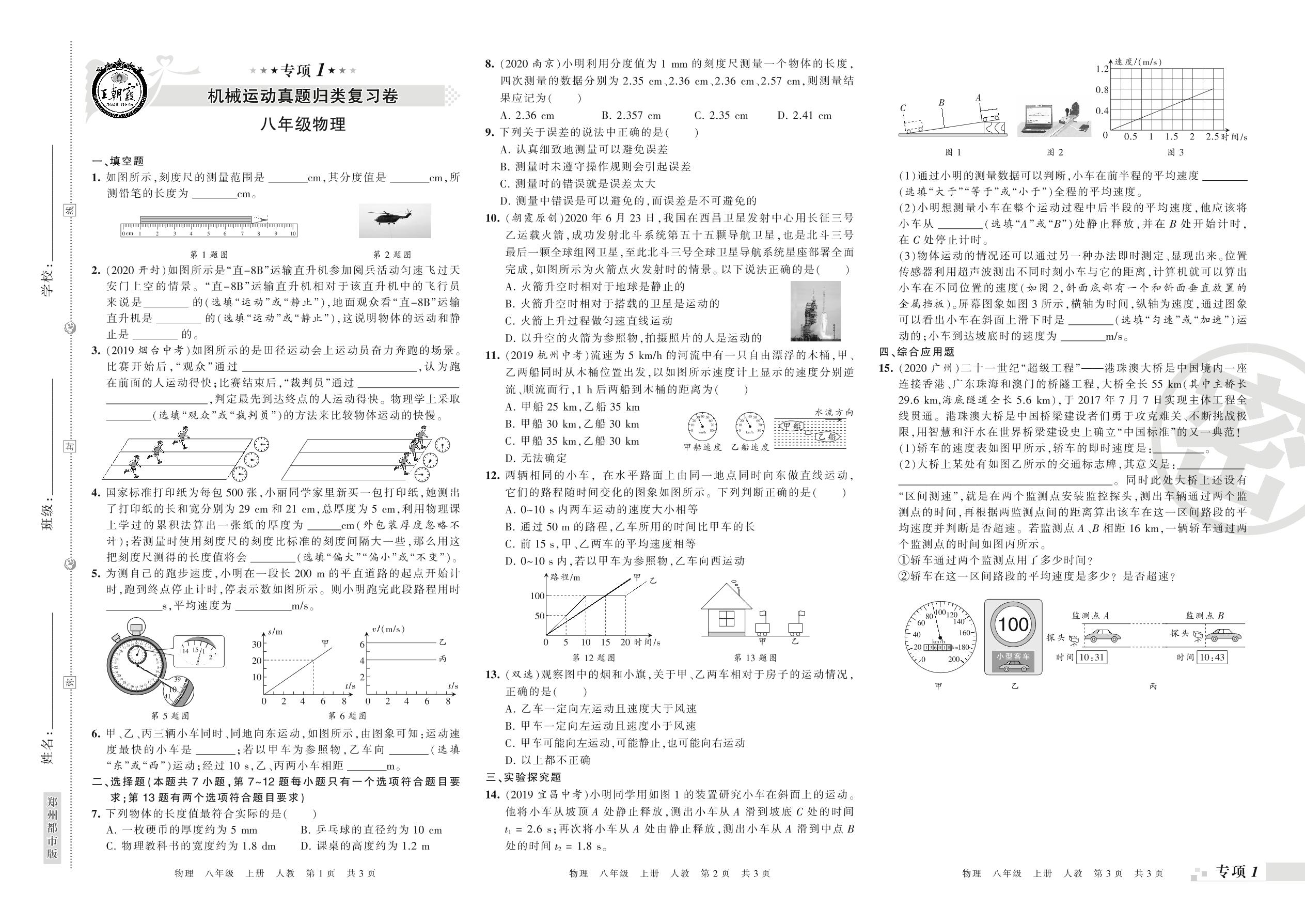 王朝霞期末专项卷——机械运动、声现象真题归类复习八年级上册物理(人教版)_R210810163133【0】
