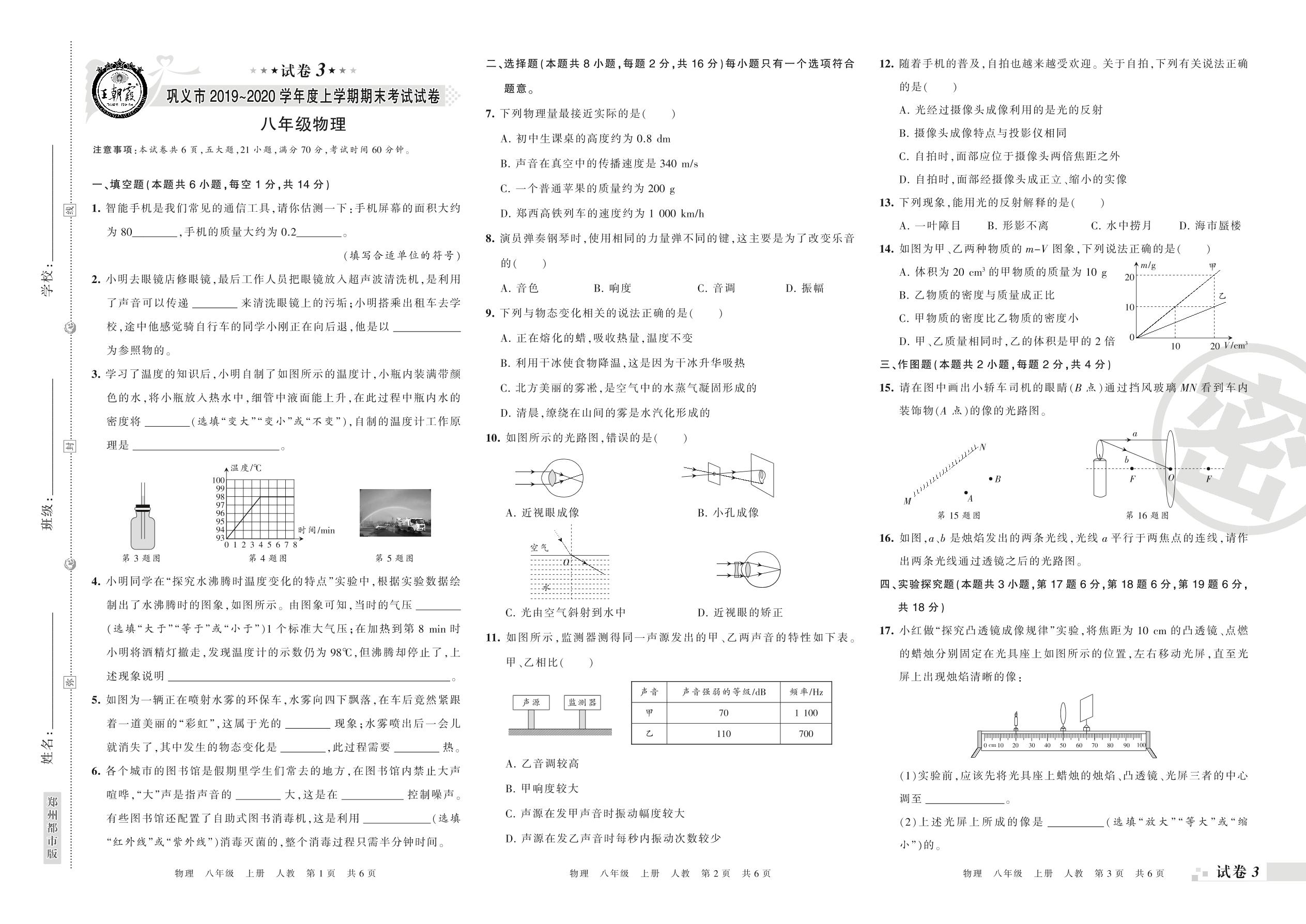 2019-2020学年第一学期巩义市八年级物理试卷(人教版)【3】