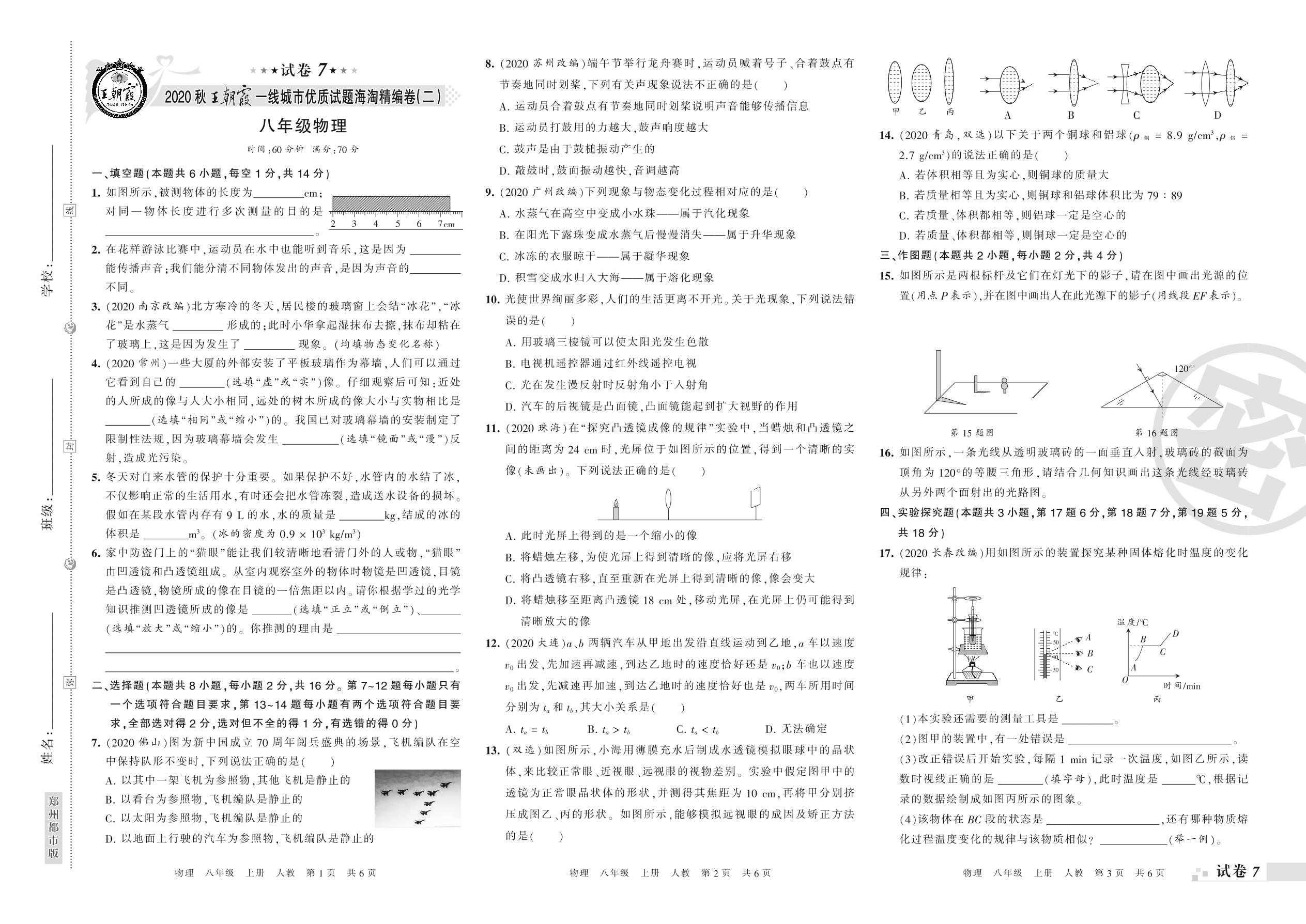 王朝霞海淘期末精编卷八年级上册物理(人教版)【7】