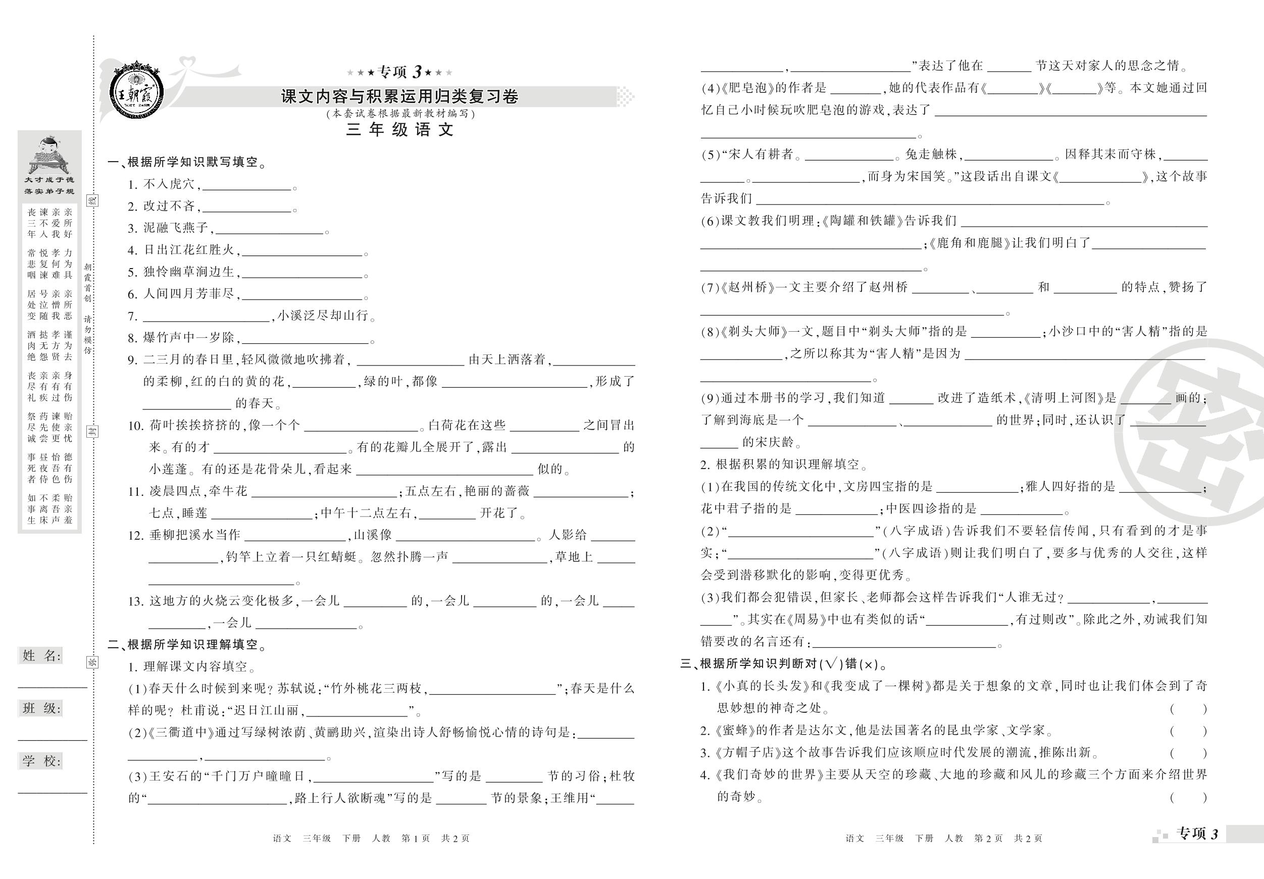 王朝霞期末专项卷三年级下册语文(人教版)_R21080193322【0】