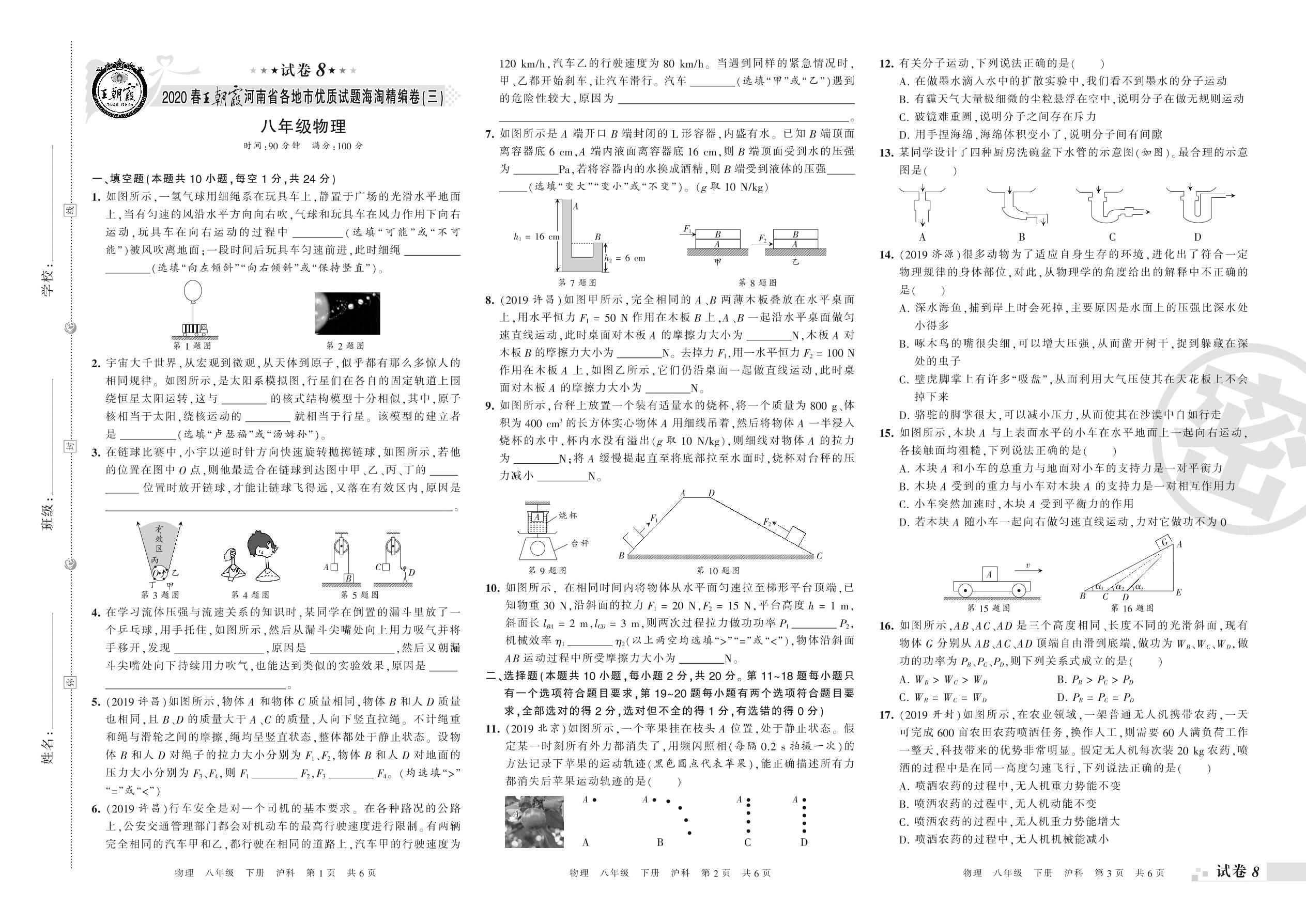 河南省各地市优质试题海淘精编卷(三)八年级下册物理(沪科版)_R210810163500【8】