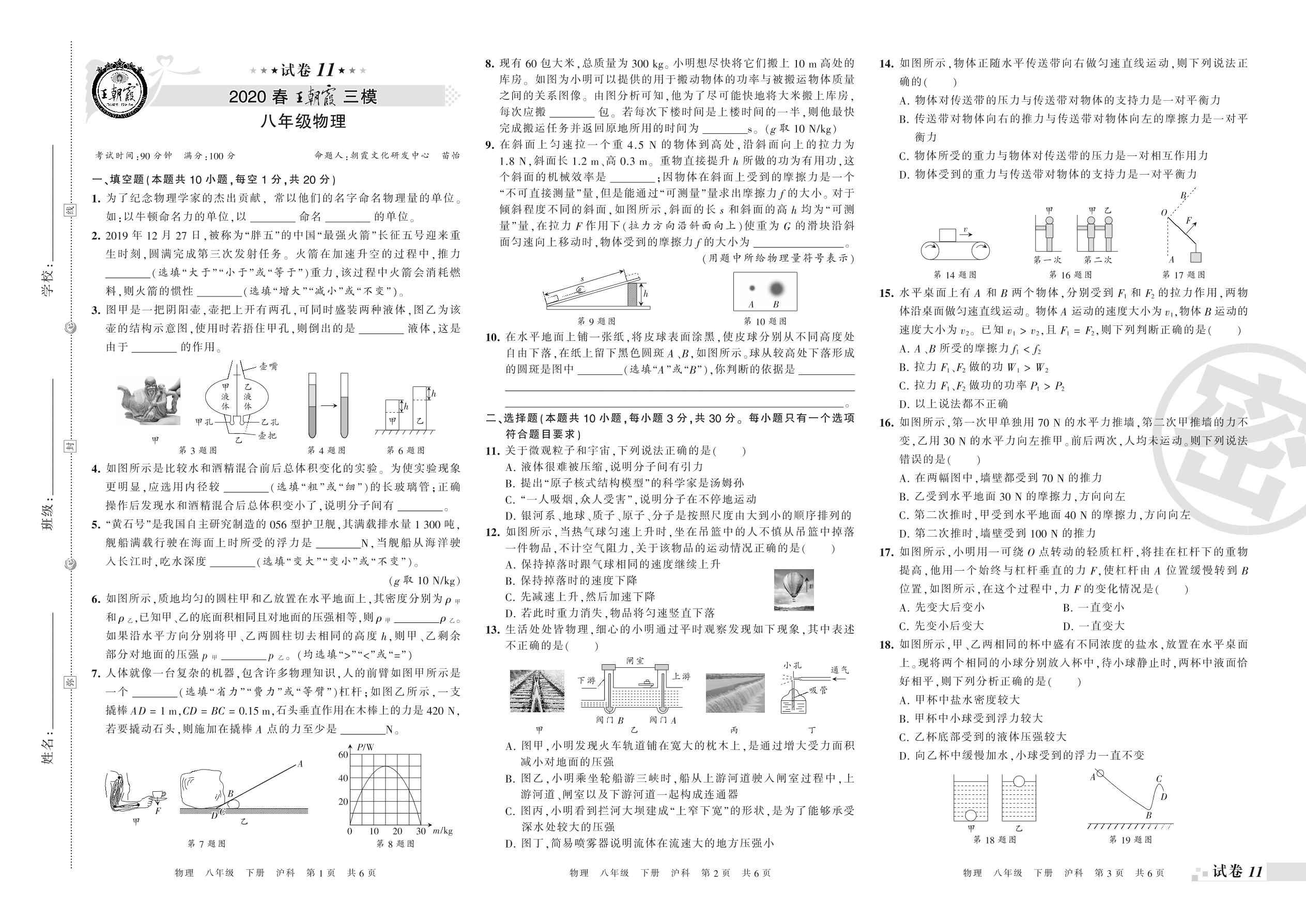 2019-2020学年第二学期王朝霞期末模拟卷八年级物理(沪科版)_R210810163533【11】