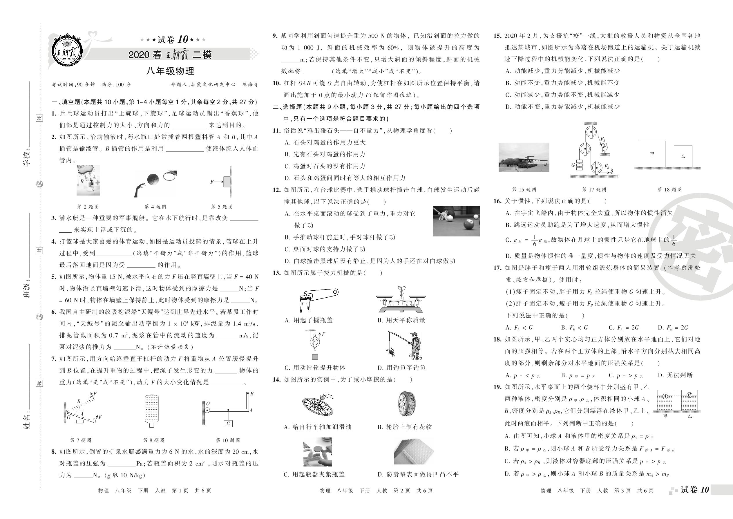 王朝霞期末模拟卷八年级下册物理(人教版)_R210810163845【10】