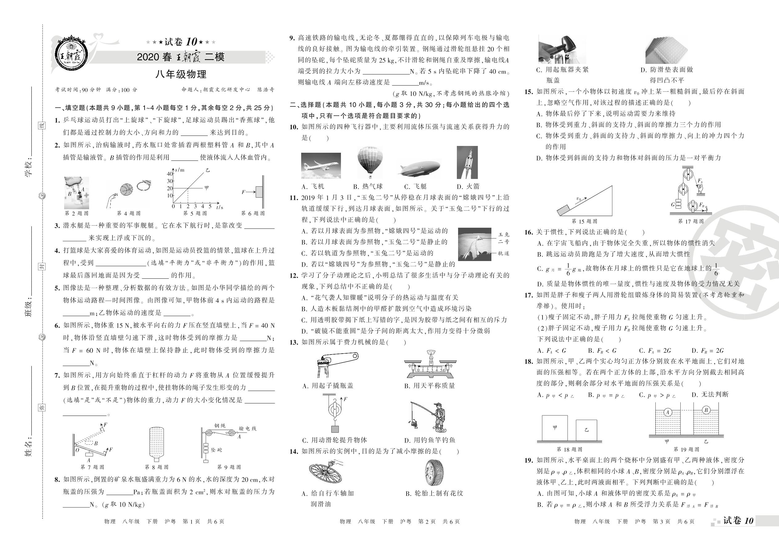 王朝霞期末模拟卷八年级下册物理(沪粤版)【10】
