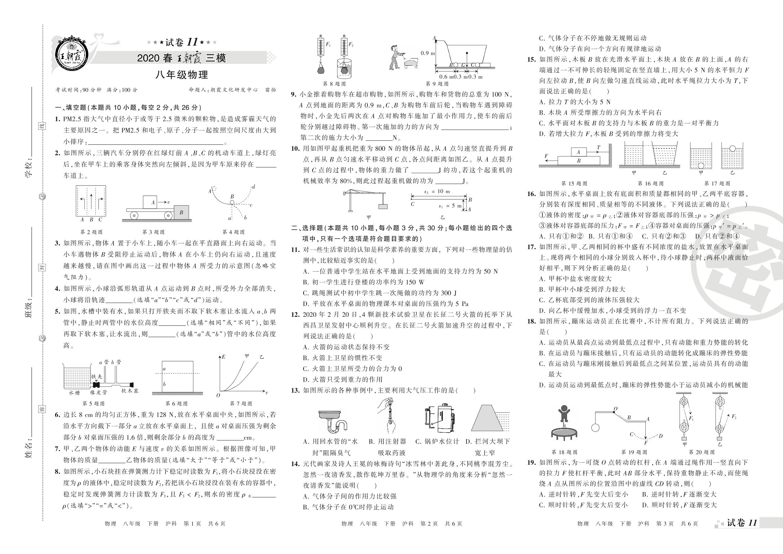 2019-2020学年第二学期王朝霞期末模拟卷八年级物理(沪科版)_R210810164324【11】