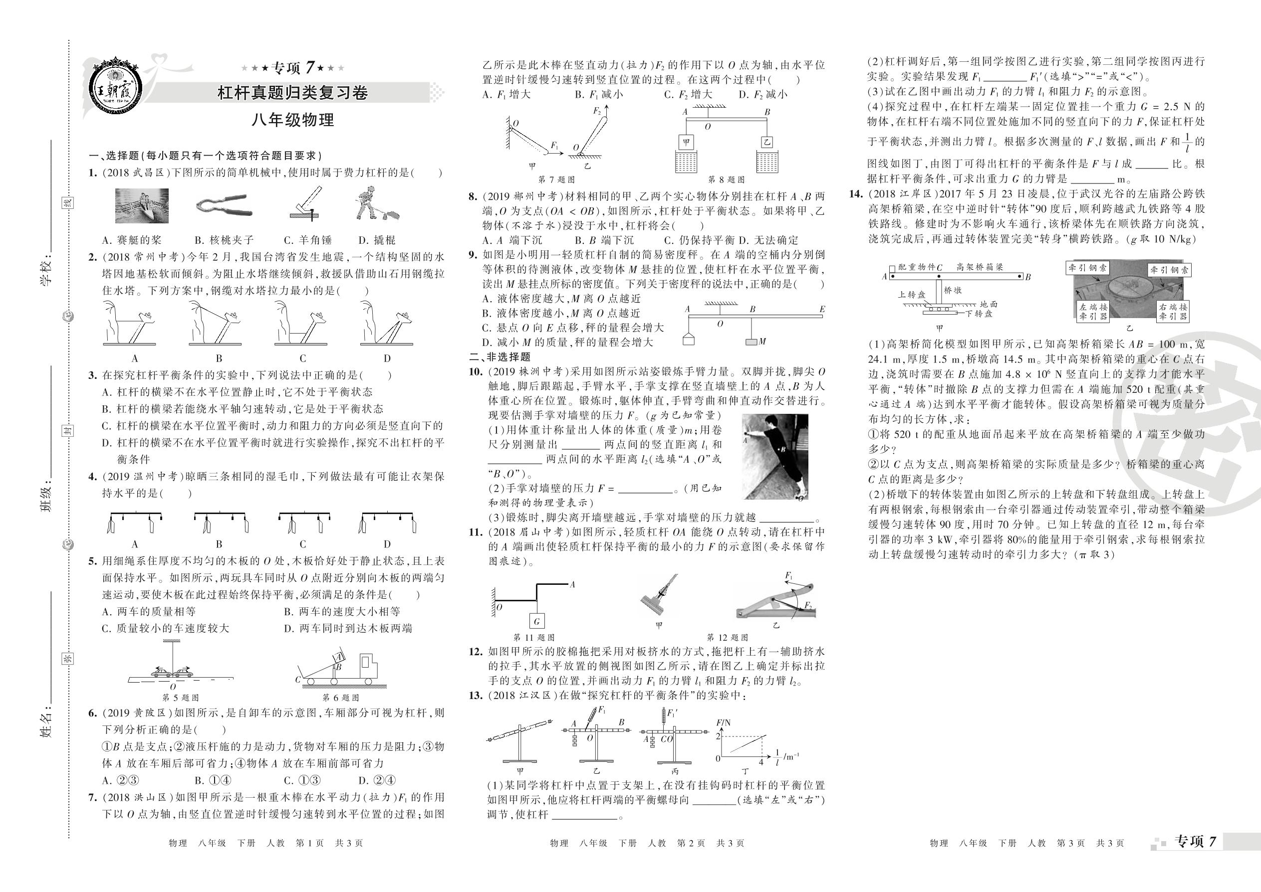 王朝霞期末专项卷——杠杆、滑轮及机械效率真题归类复习卷八年级下册物理(人教版)_R210810164538【0】