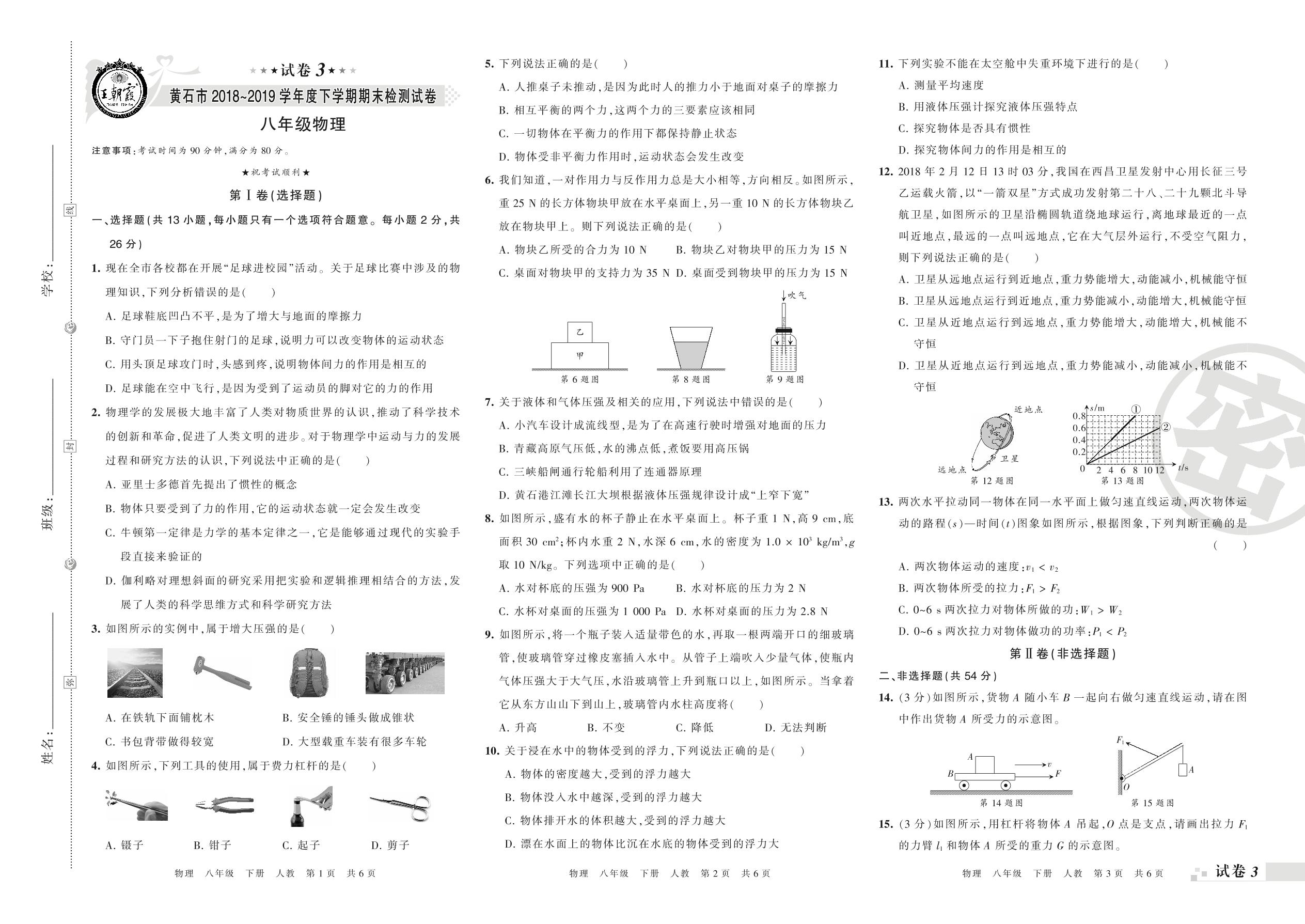 八年级物理人教版下册期末卷