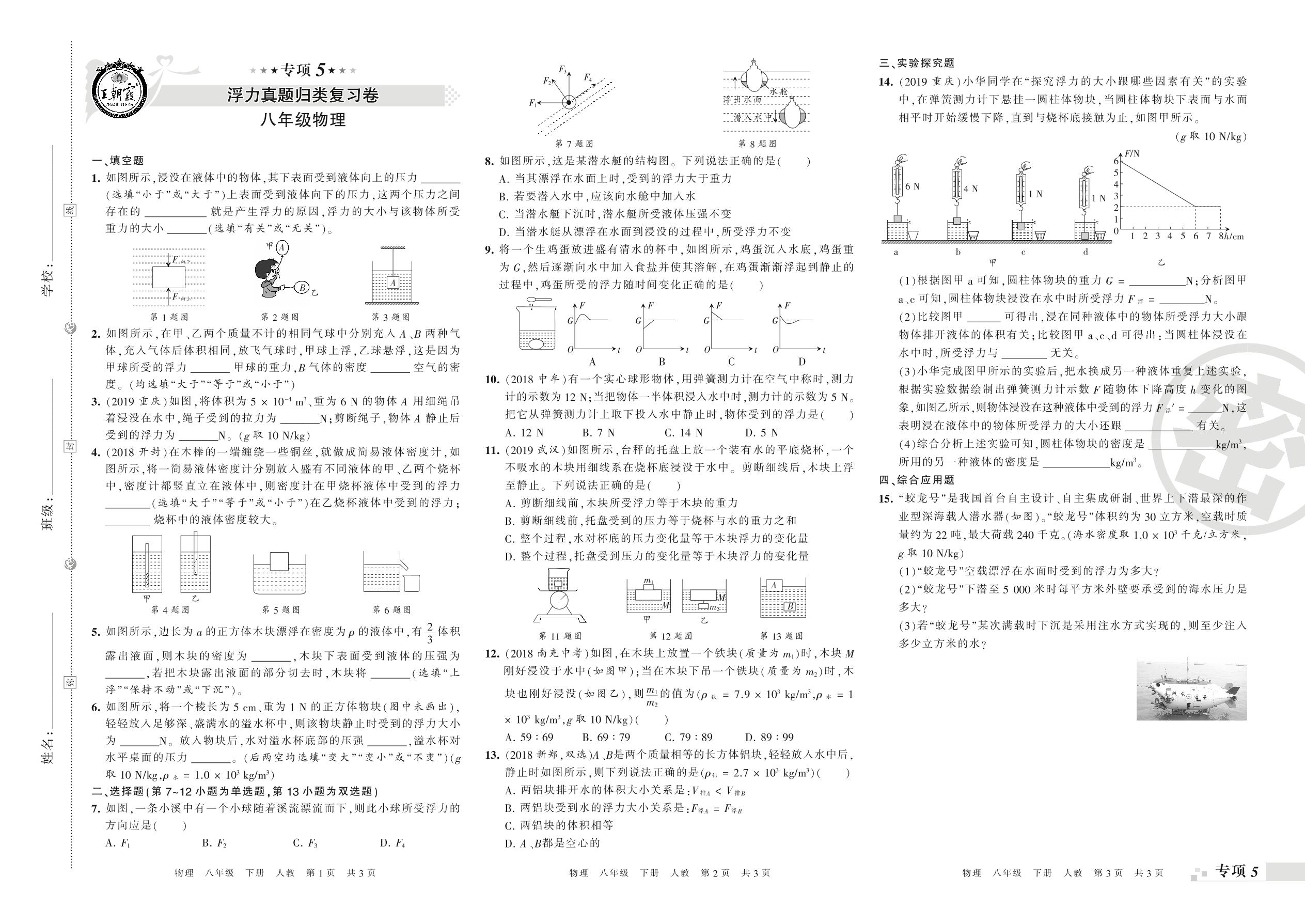 王朝霞期末专项卷——浮力、功和机械能真题归类复习卷八年级下册物理(人教版)_R210810164810【0】
