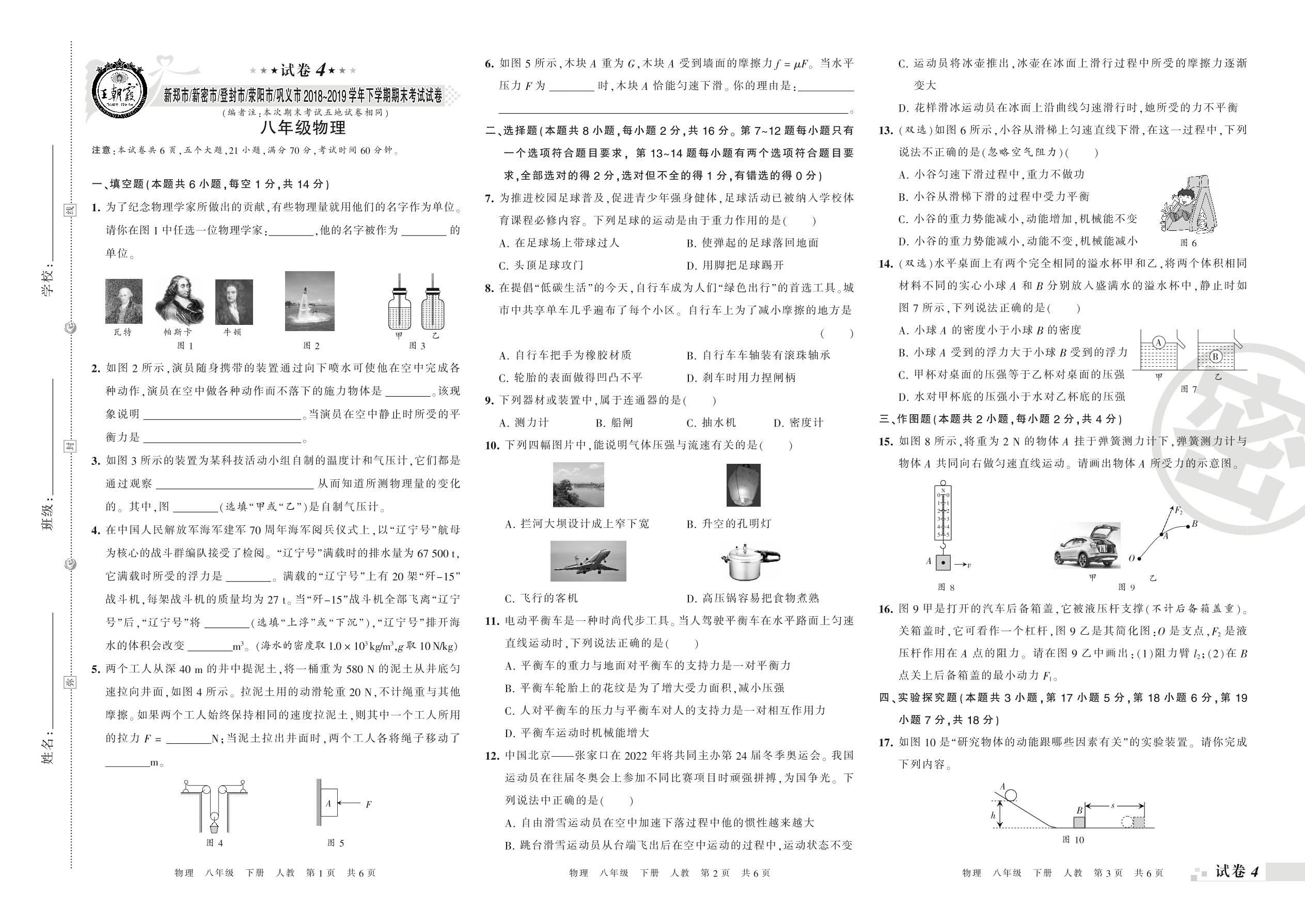2018-2019学年第二学期新郑市、新密市、登封市、荥阳市八年级物理试卷(人教版)【4】