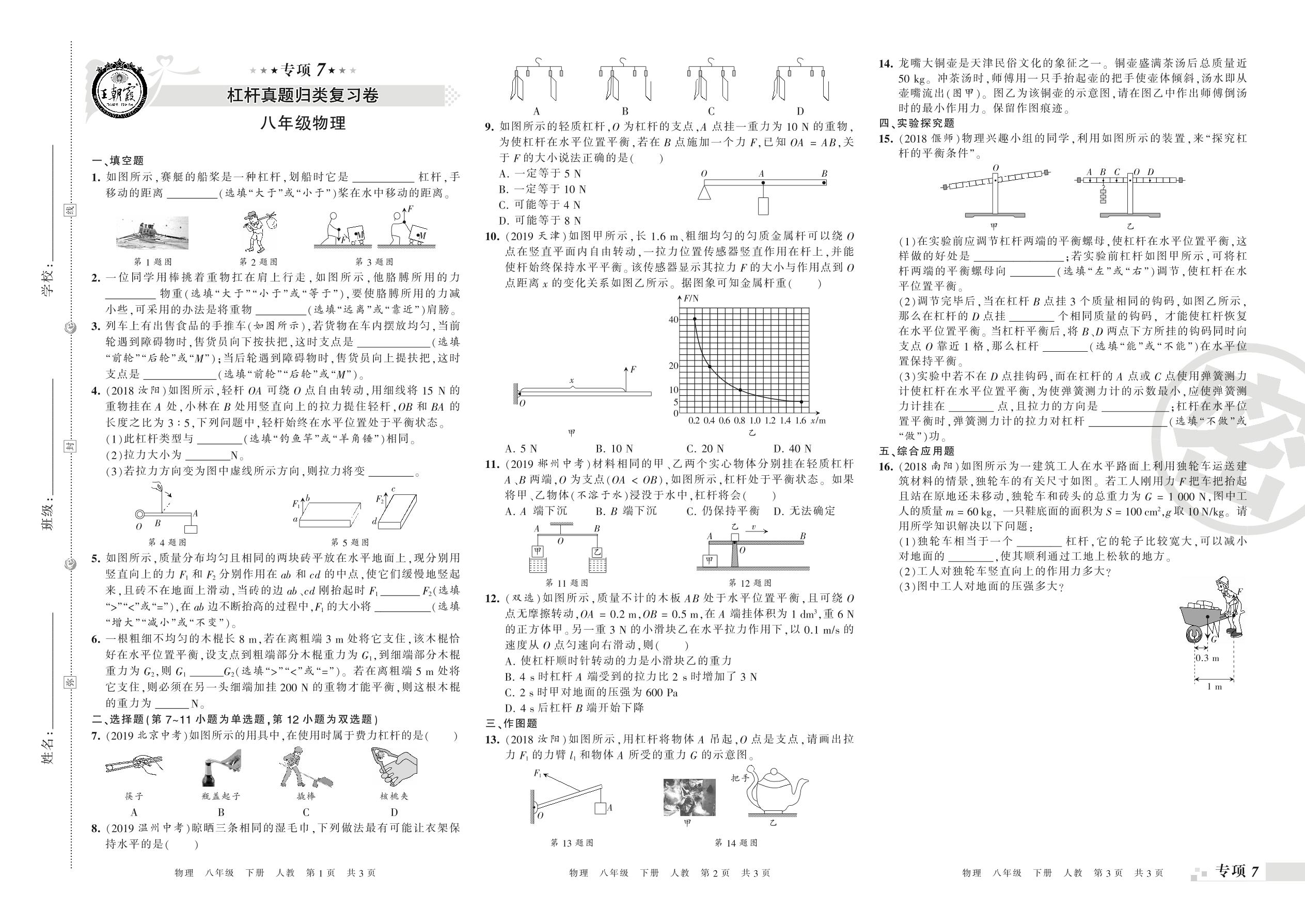 王朝霞期末专项卷——杠杆、滑轮及机械效率真题归类复习卷八年级下册物理(人教版)_R210810165242【0】