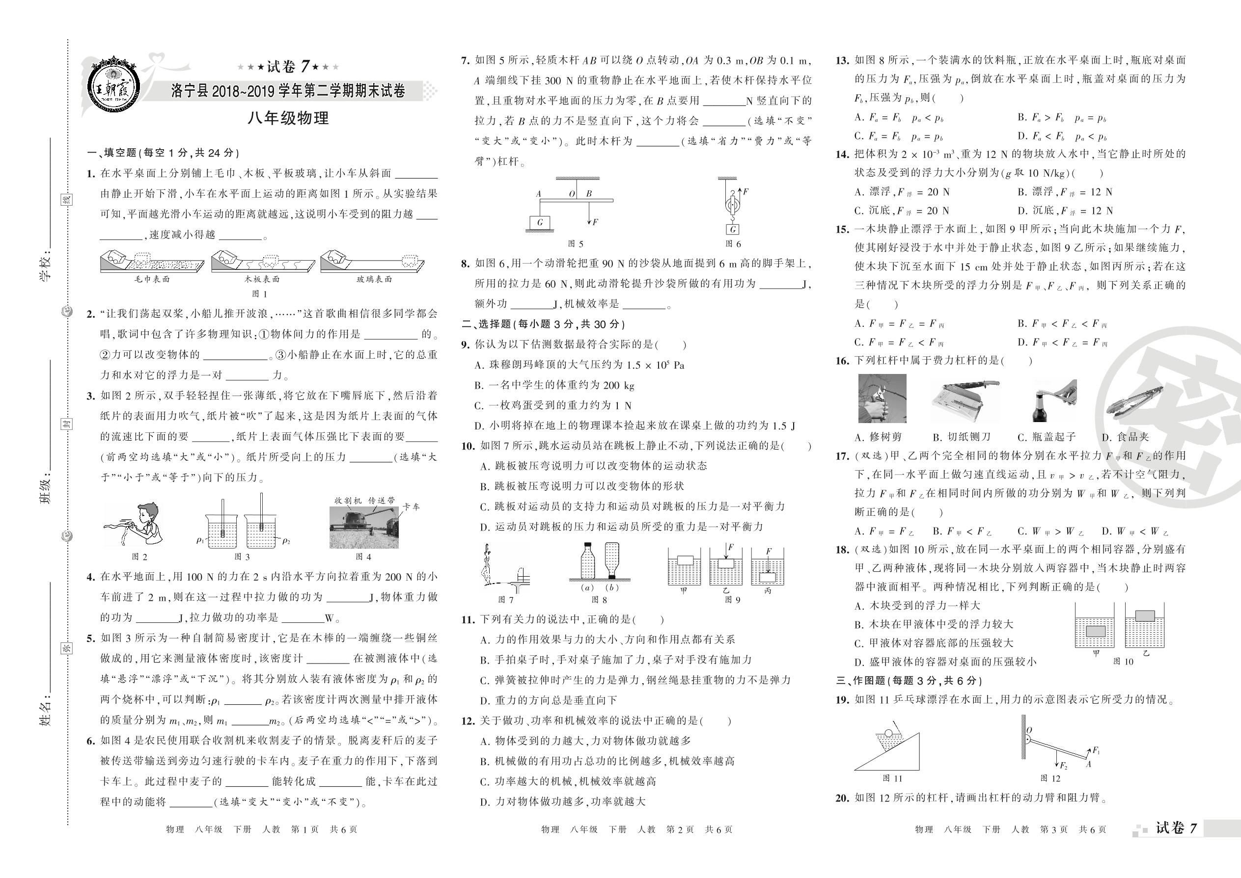 2018-2019学年第二学期洛阳市洛宁县八年级物理试卷(人教版)【7】