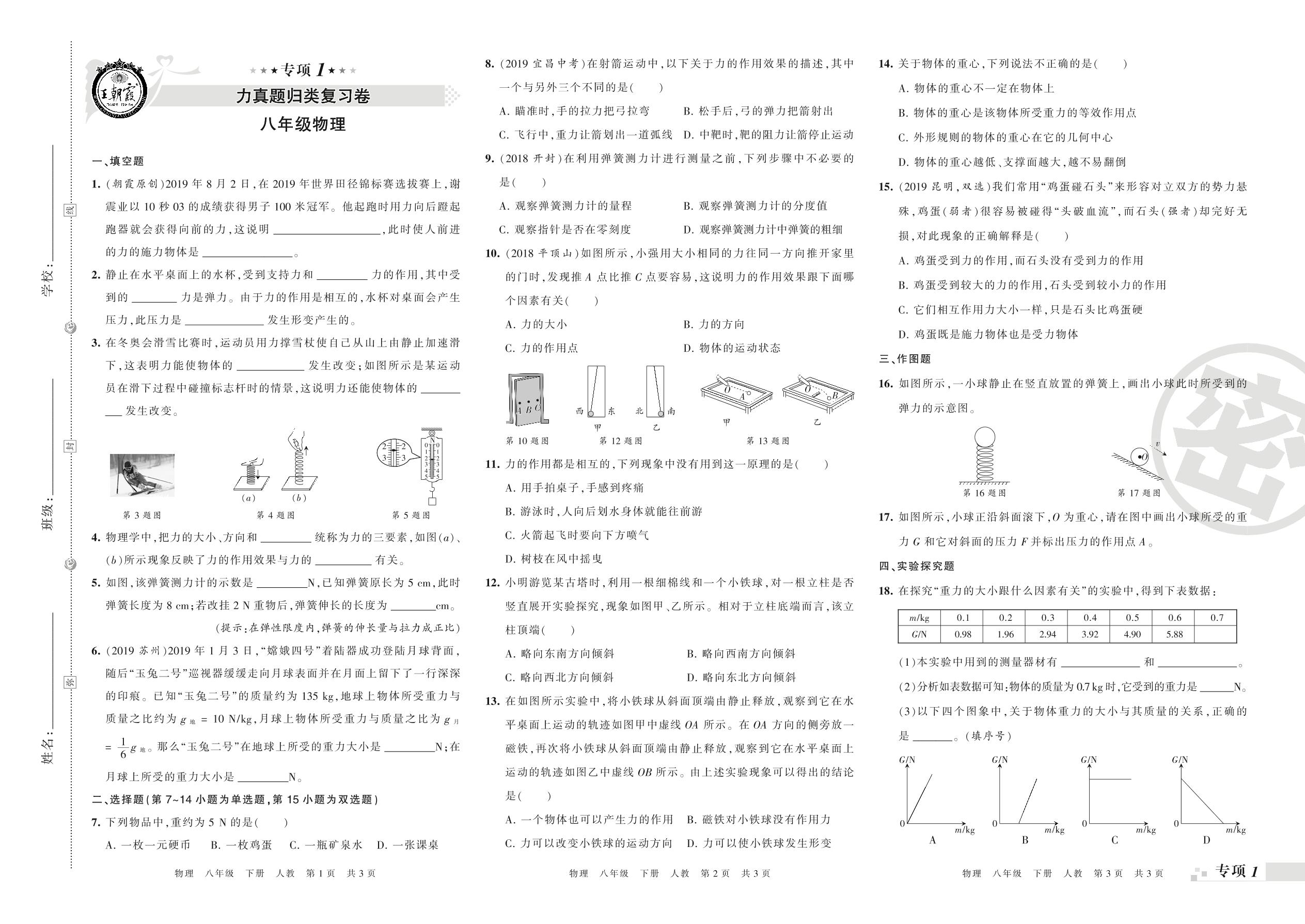 王朝霞期末专项卷——力、运动和力真题归类复习卷八年级下册物理(人教版)_R210810165538【0】