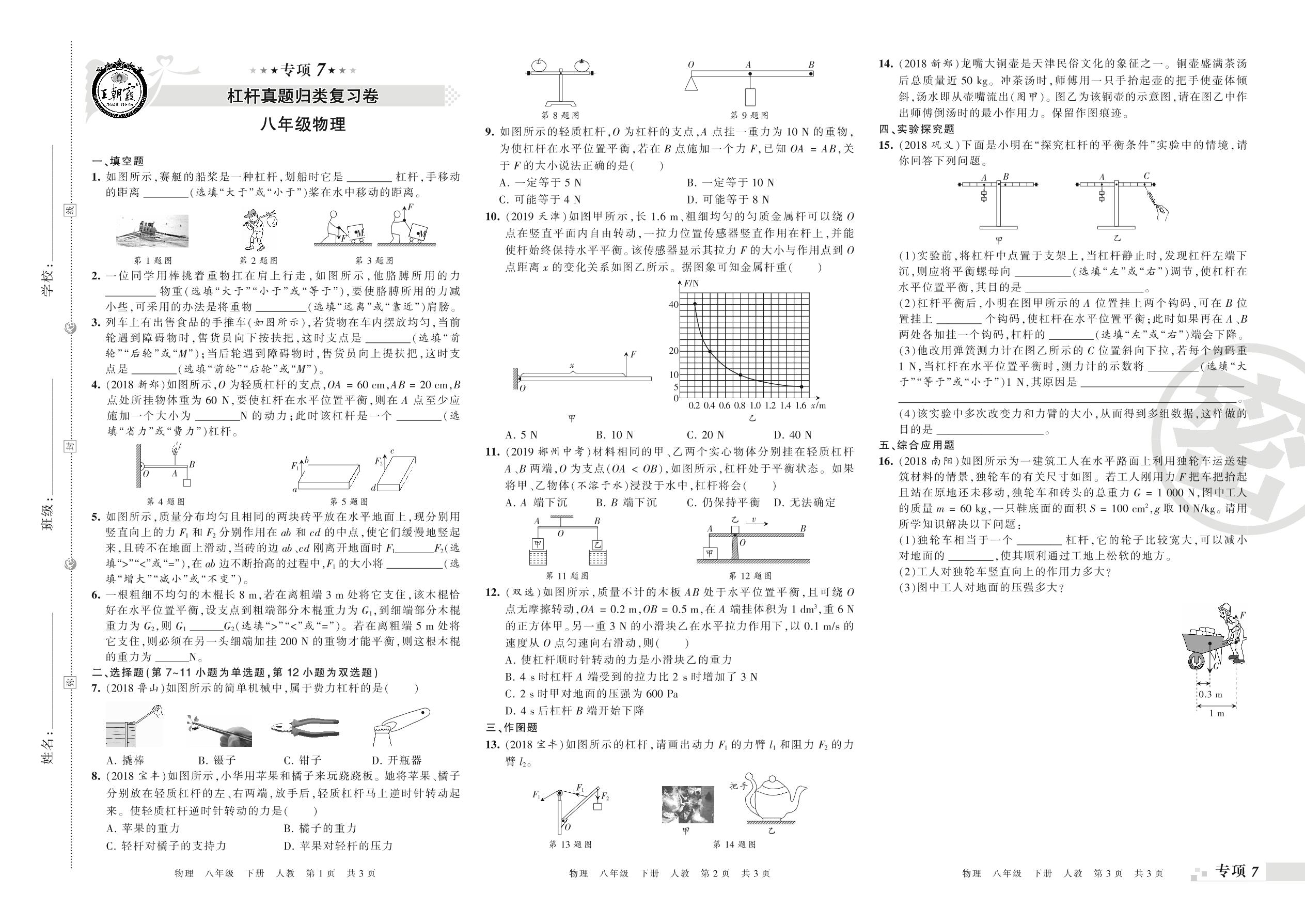 王朝霞期末专项卷——杠杆、滑轮及机械效率真题归类复习卷八年级下册物理(人教版)_R210810165559【0】