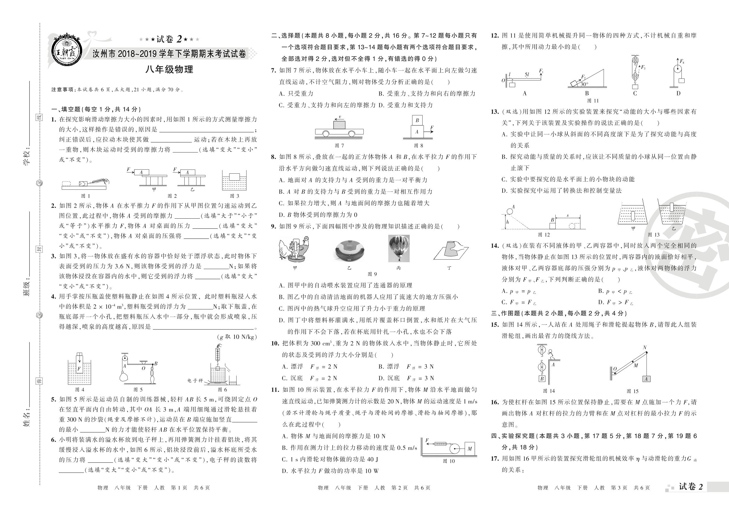 八年级物理人教版下册期末卷