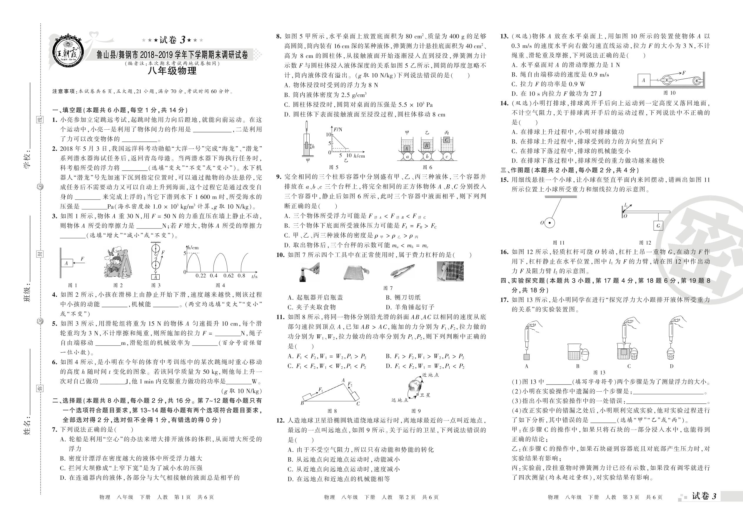 2018-2019学年第二学期鲁山县、舞钢市八年级物理试卷(人教版)【3】