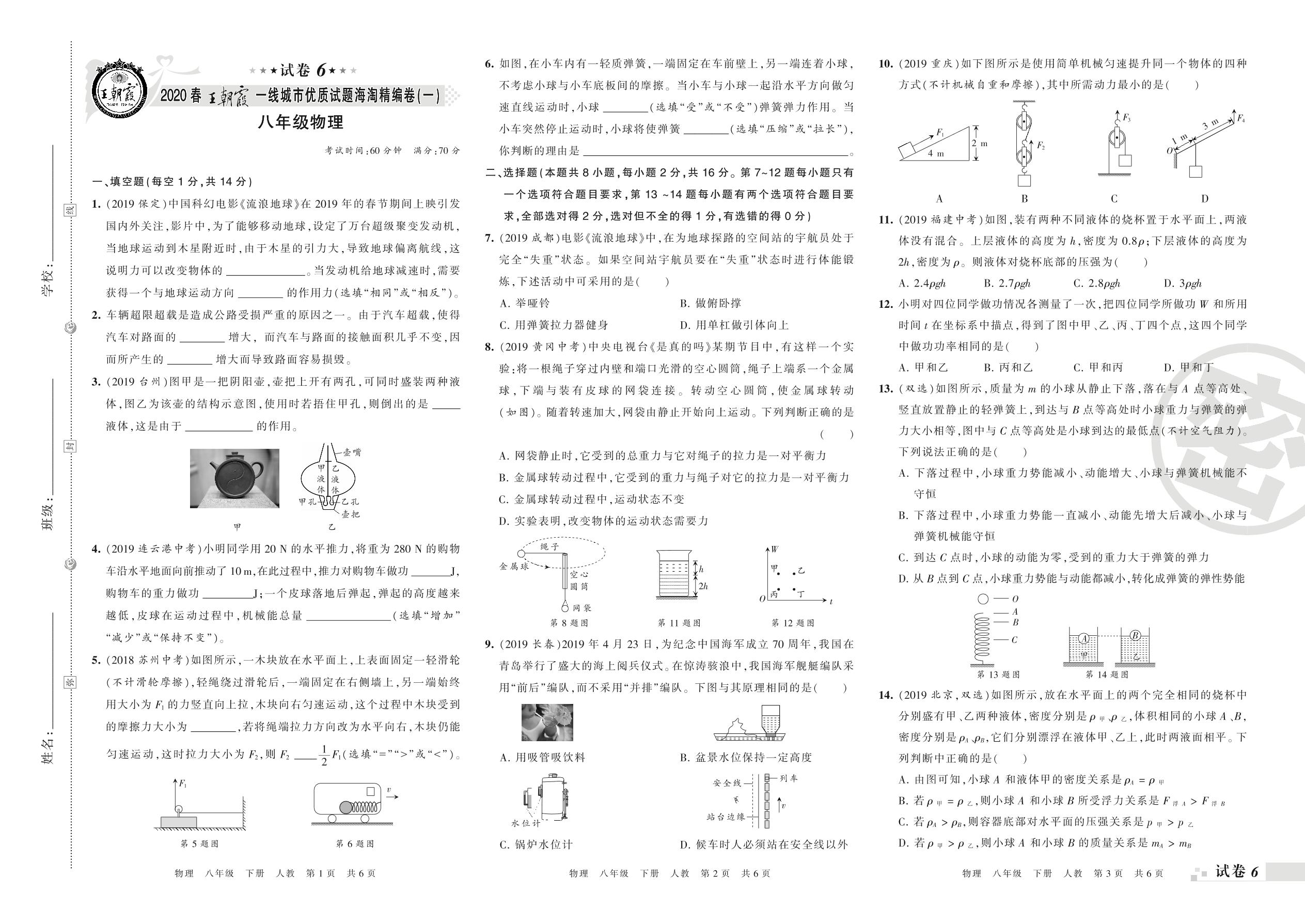 一线城市优质试题海淘精编卷(一)八年级下册物理(人教版)_R210810165638【6】