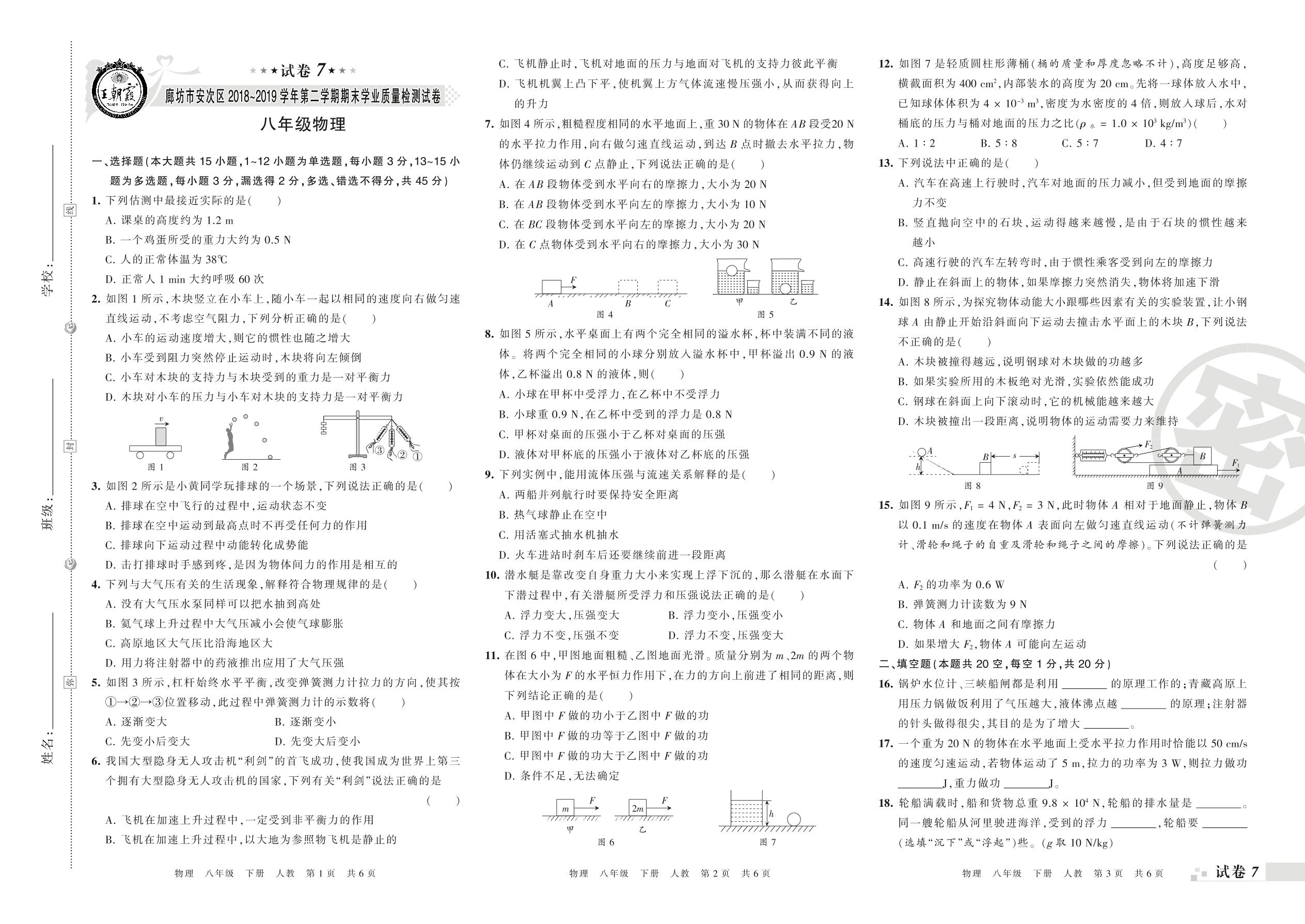 2018-2019学年第二学期廊坊市安次区八年级物理试卷(人教版)【7】