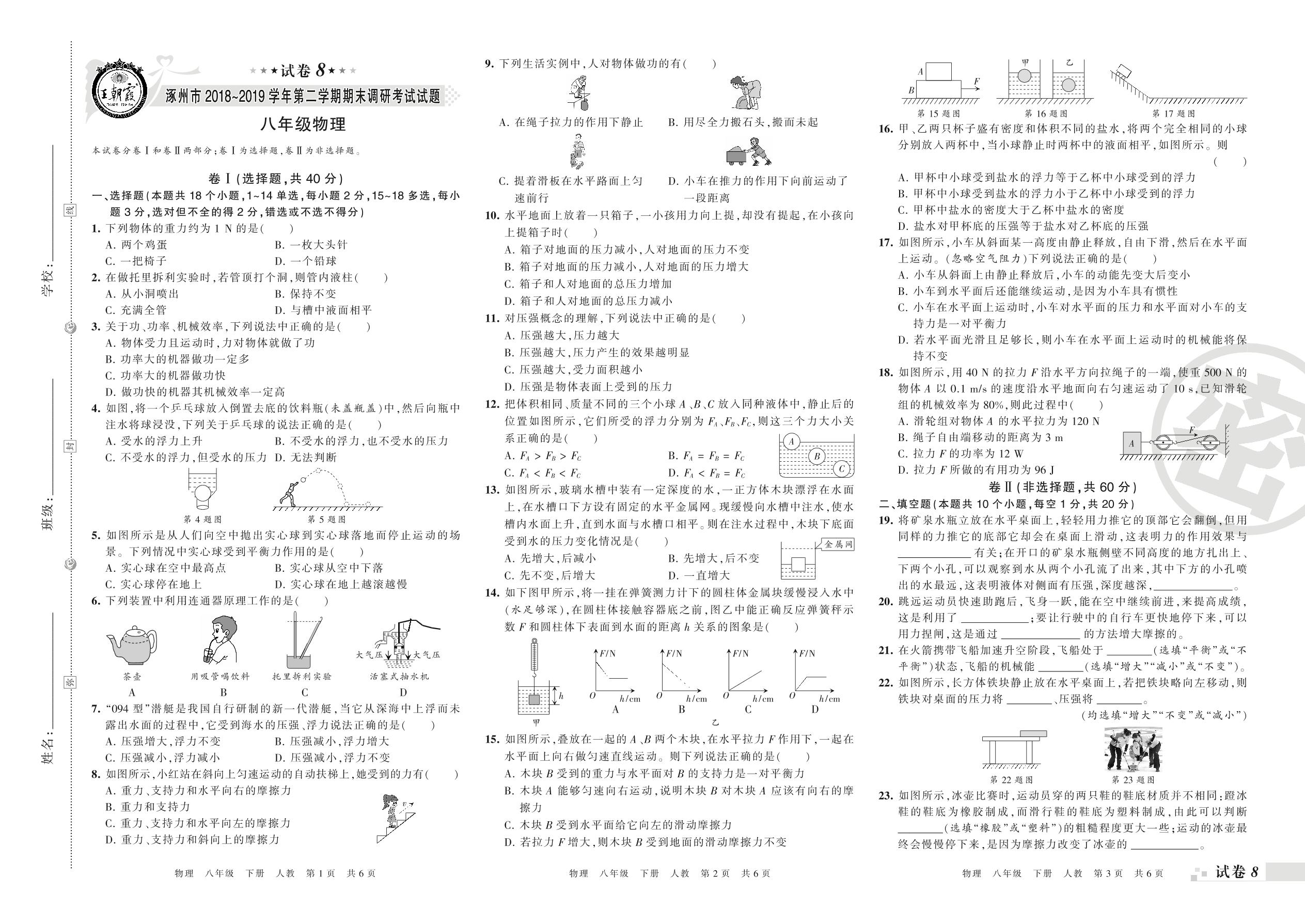 2018-2019学年第二学期涿州市八年级物理试卷(人教版)【8】