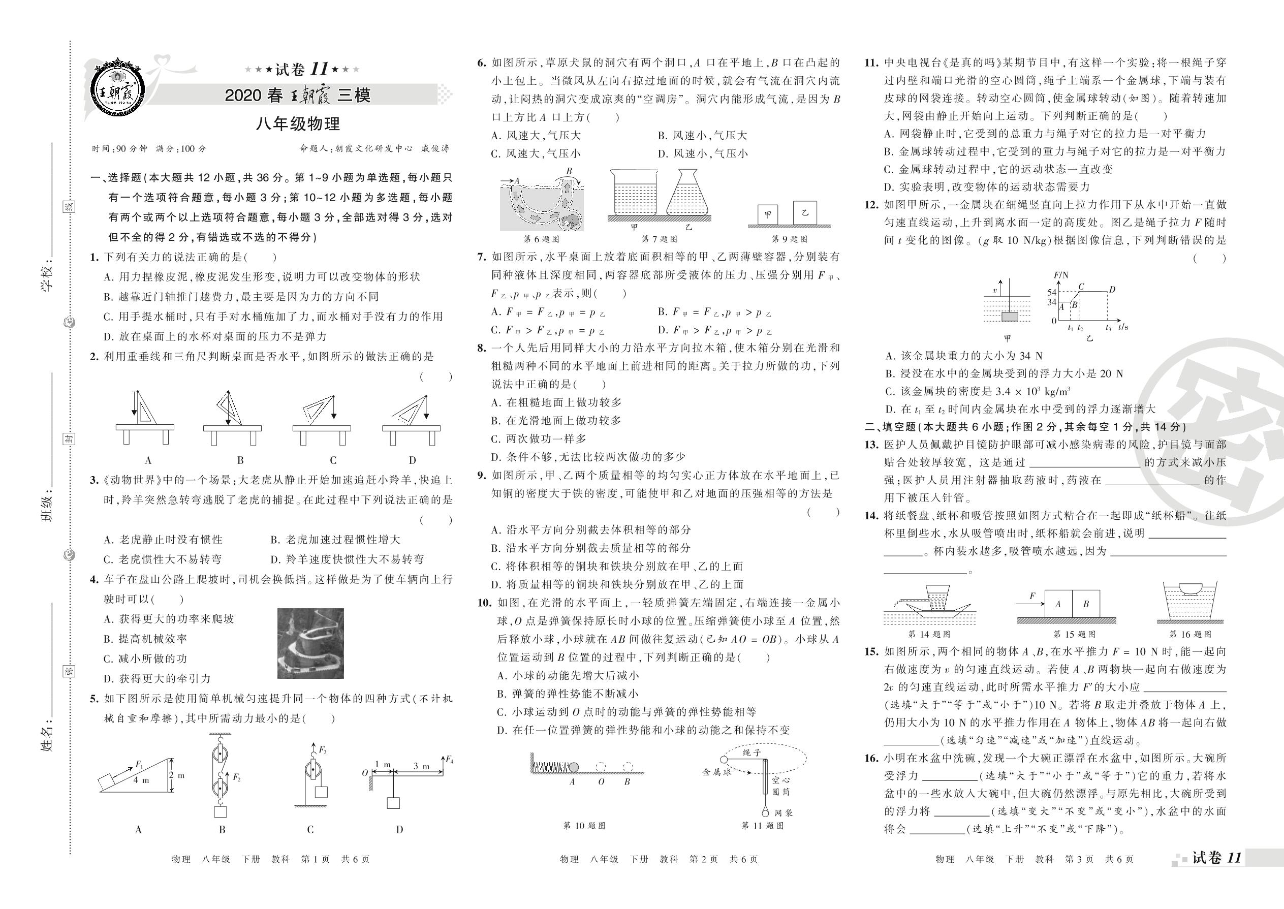 王朝霞期末模拟卷八年级下册物理(教科版)_R210810170123【11】