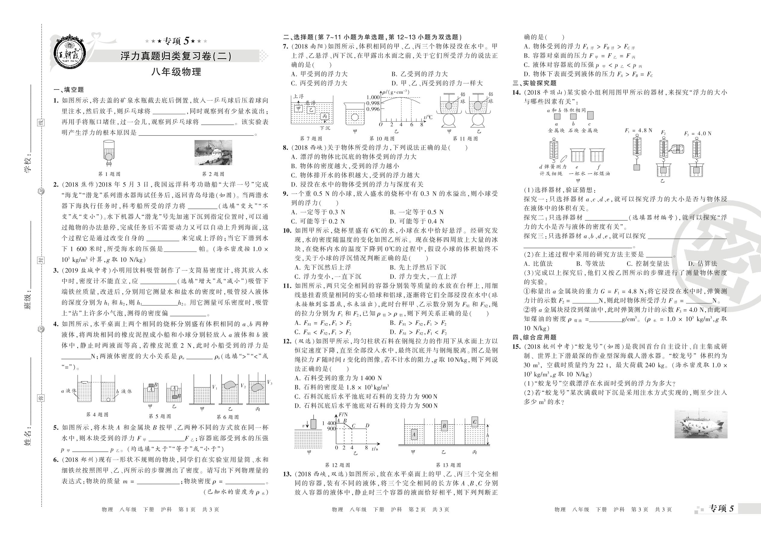 王朝霞期末专项卷——浮力(二)、简单机械真题归类复习卷八年级下册物理(沪科版)_R210810170146【0】
