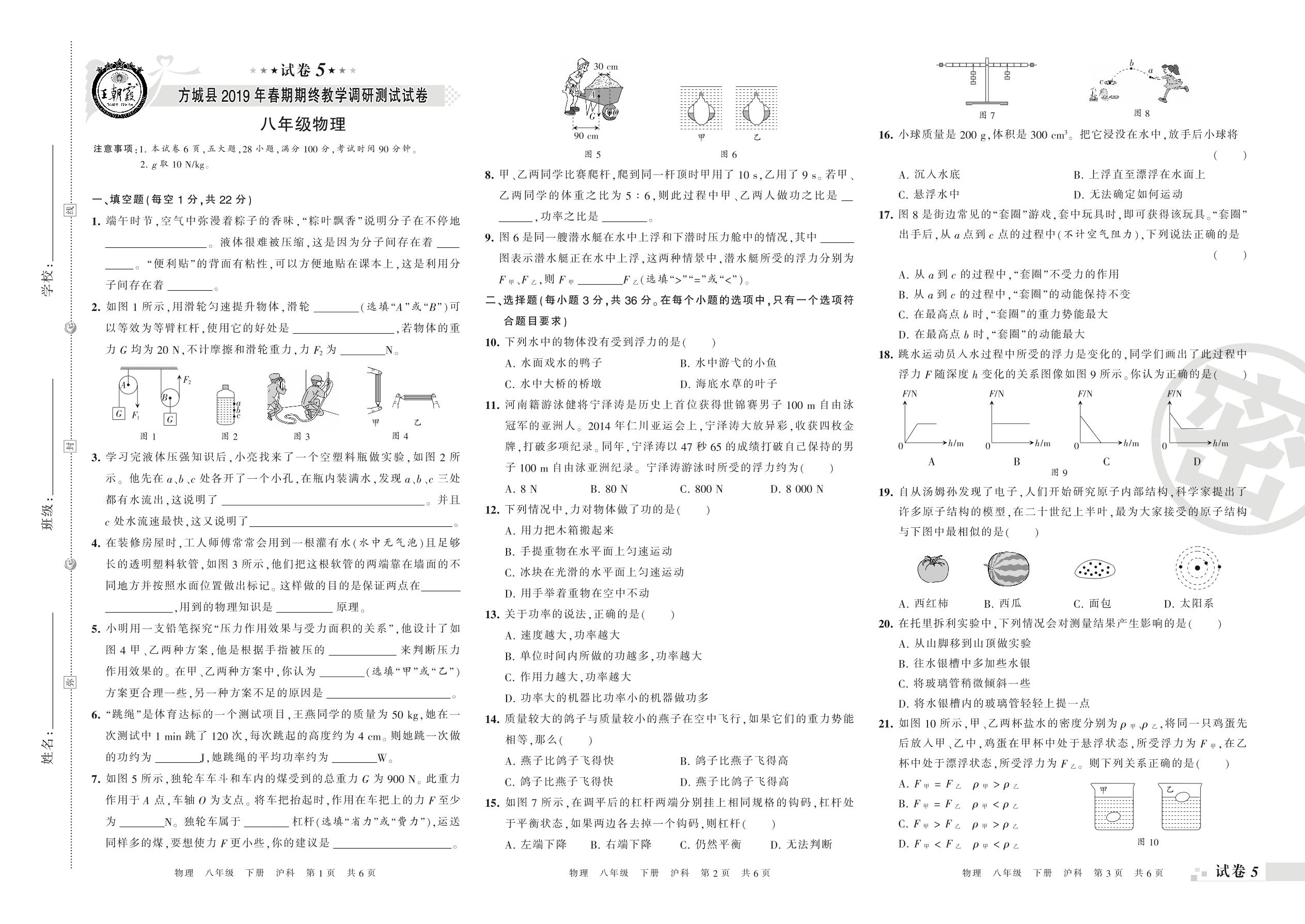 2018-2019学年第二学期南阳市方城县八年级物理试卷(沪科版)【5】