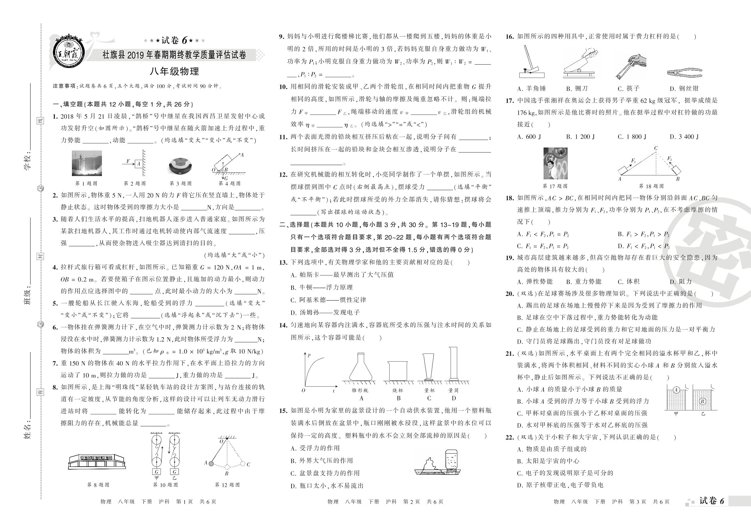 2018-2019学年第二学期南阳市社旗县八年级物理试卷(沪科版)【6】