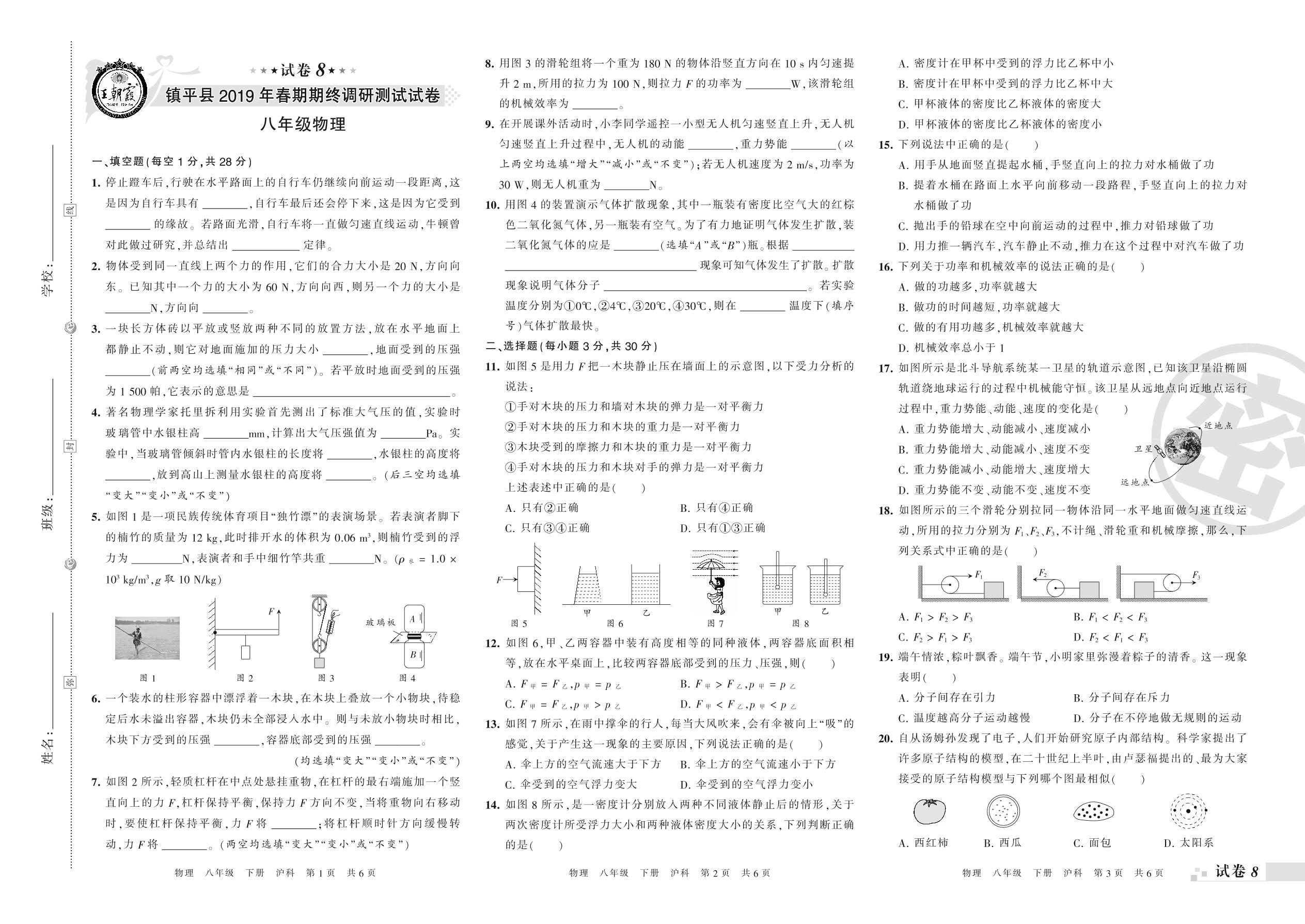 2018-2019学年第二学期南阳市镇平县八年级物理试卷(沪科版)【8】
