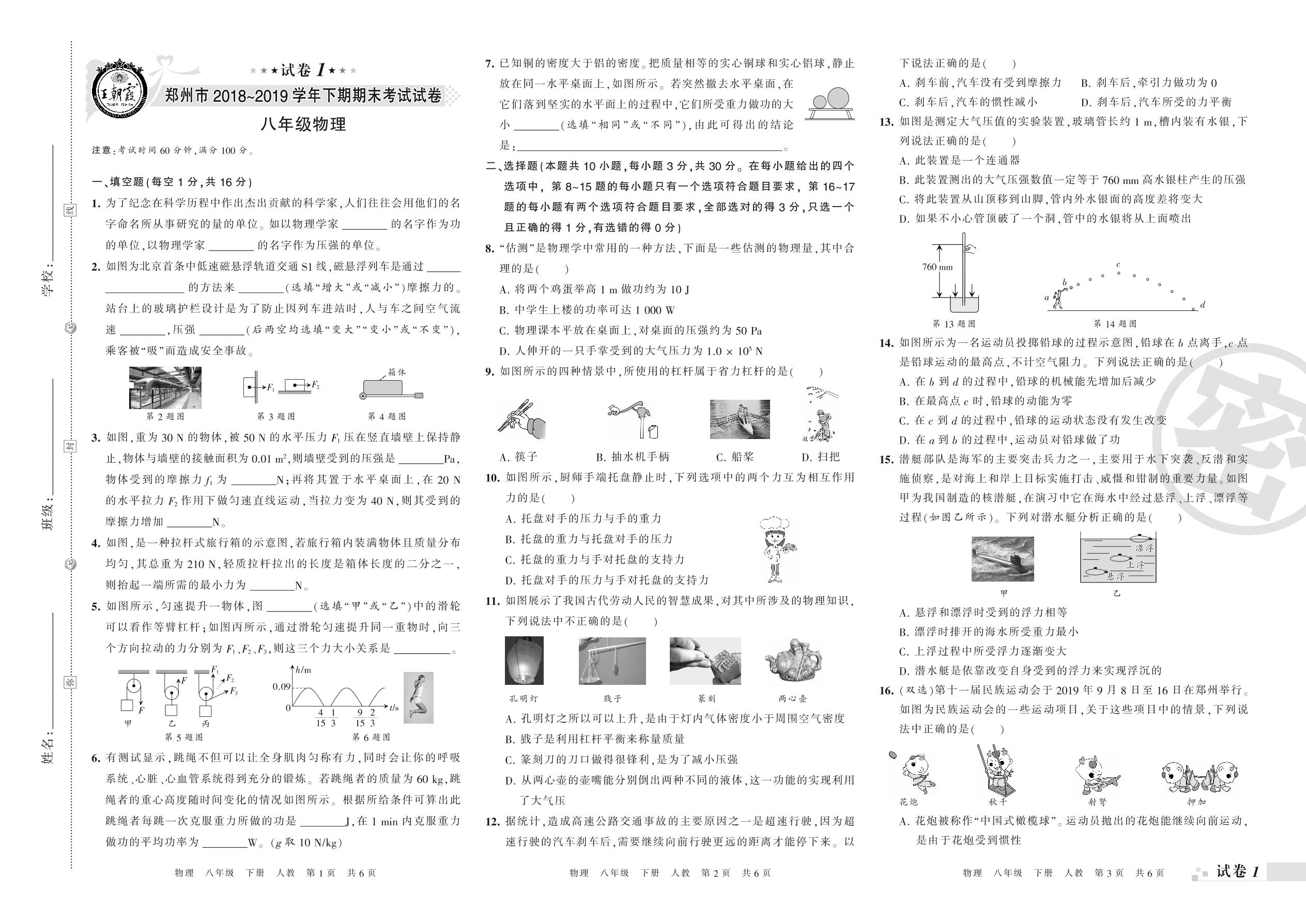 2018-2019学年第二学期郑州市八年级物理试卷(人教版)_R210810170422【1】