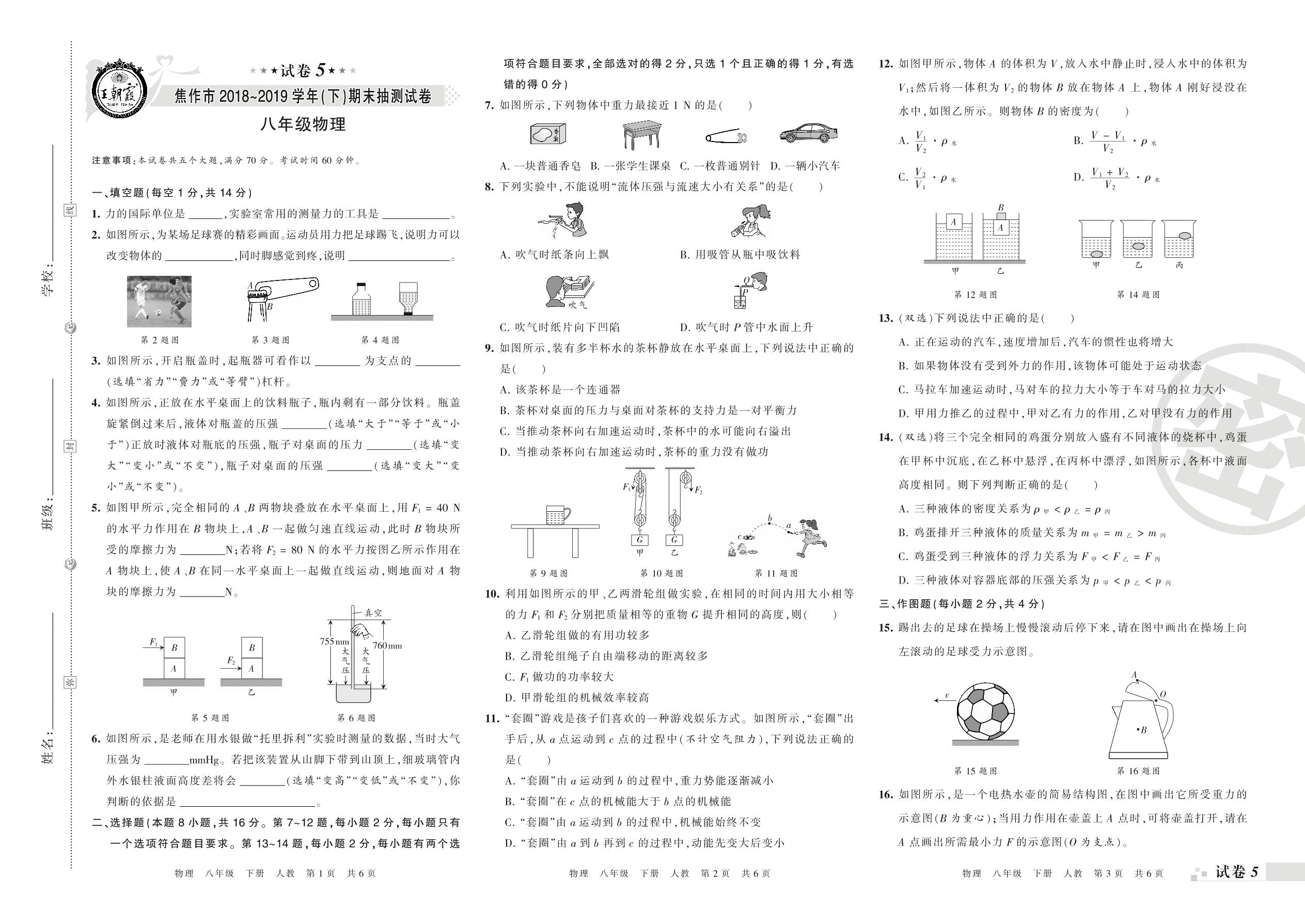 八年级物理人教版下册期末卷
