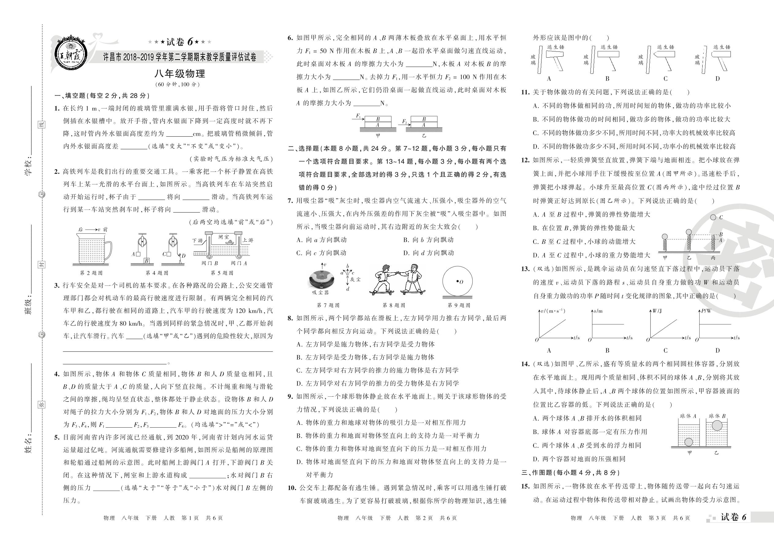 2018-2019学年第二学期许昌市八年级物理试卷(人教版)【6】