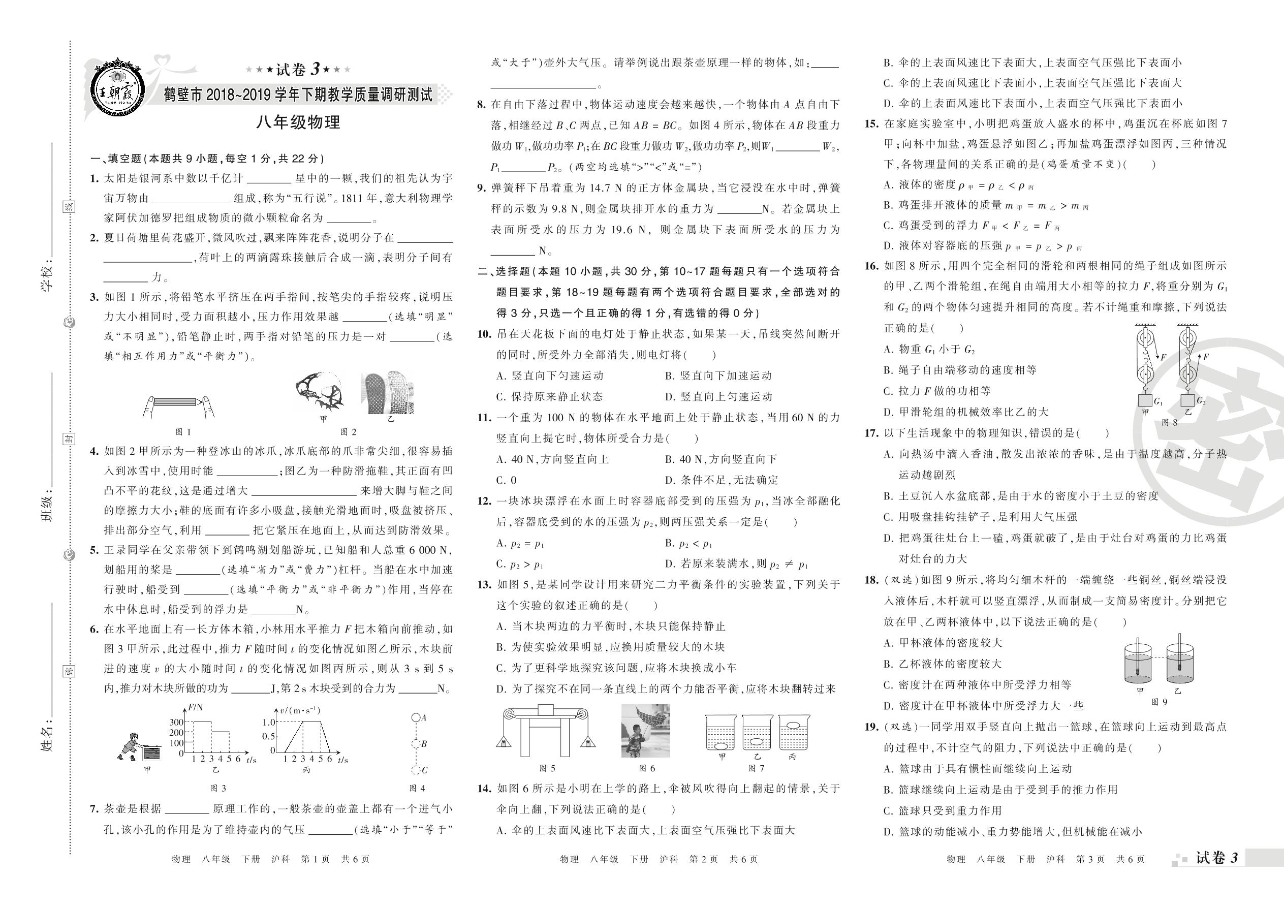 2018-2019学年第二学期鹤壁市八年级物理试卷(沪科版)【3】