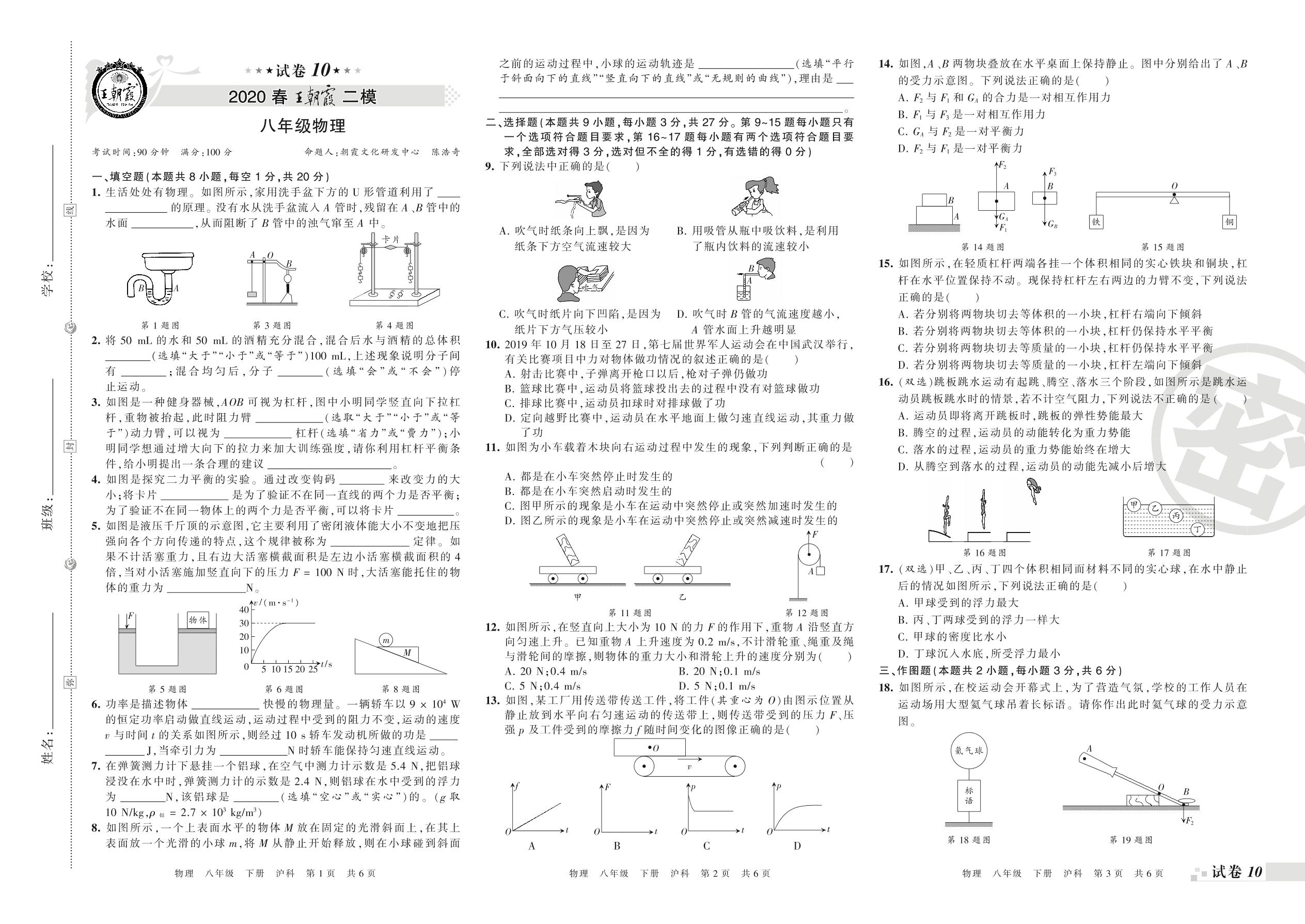 2019-2020学年第二学期王朝霞期末模拟卷八年级物理(沪科版)_R210810170806【10】