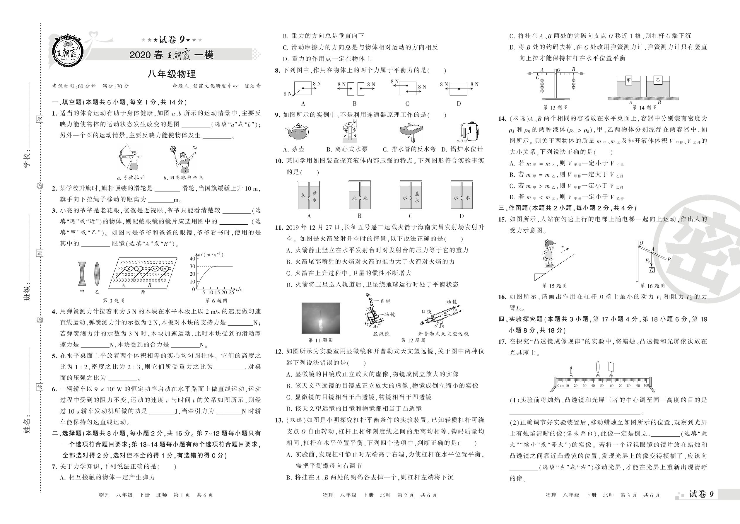 王朝霞期末模拟卷八年级下册物理(北师版)_R210810170956【9】