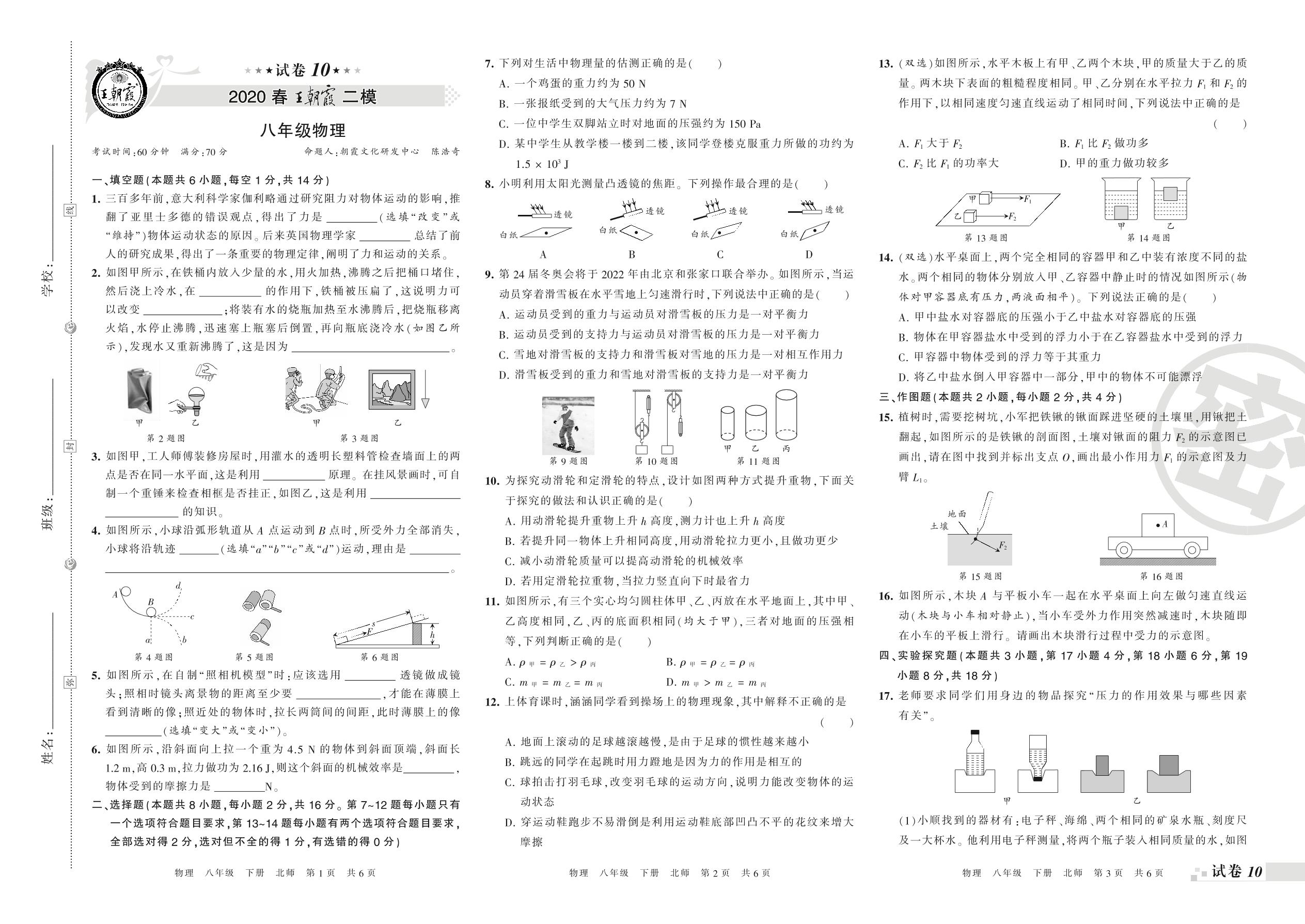 王朝霞期末模拟卷八年级下册物理(北师版)_R210810171004【10】