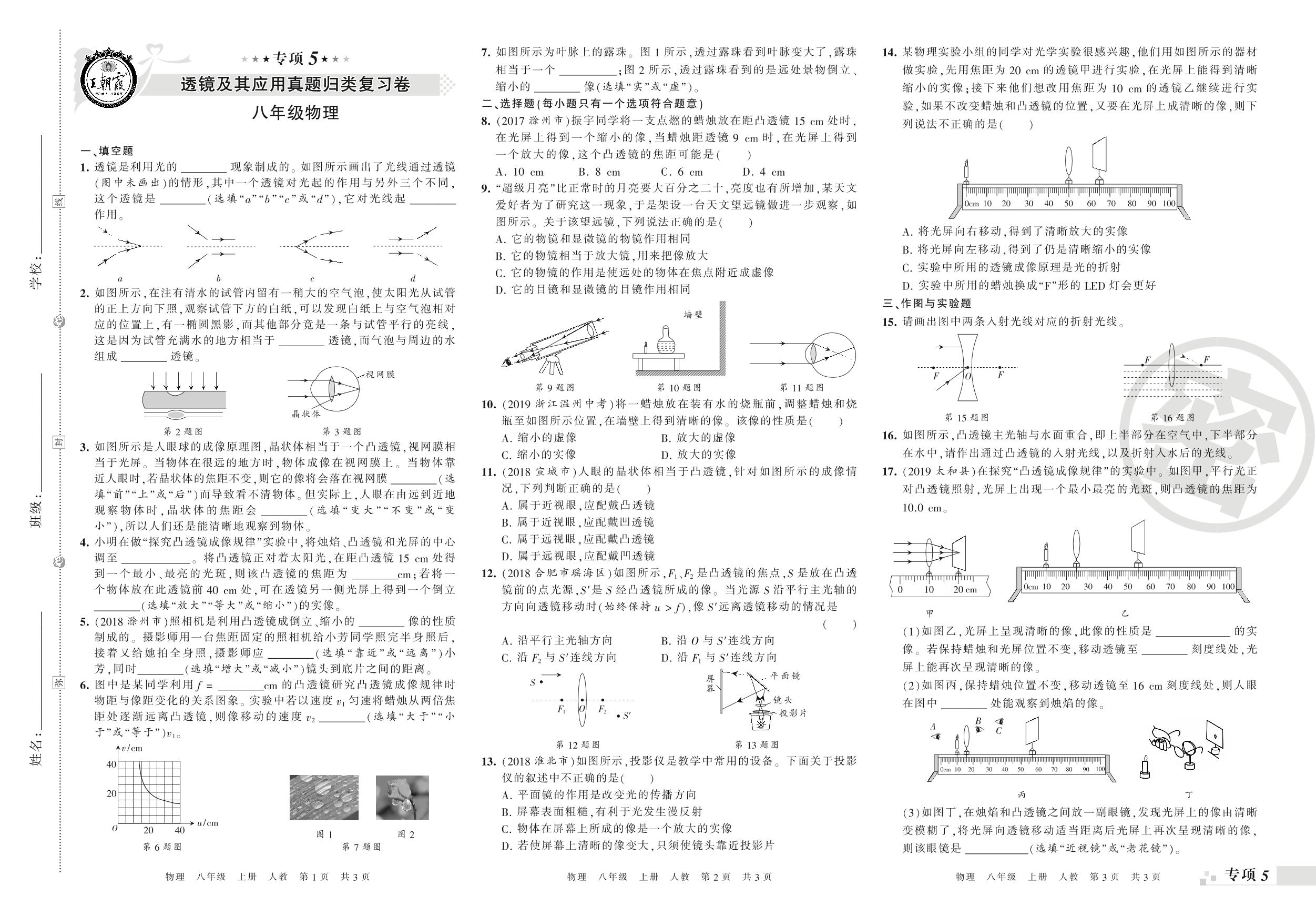 王朝霞期末专项卷——透镜及其应用、质量与密度真题归类复习八年级上册物理(人教版)_R210810171223【0】